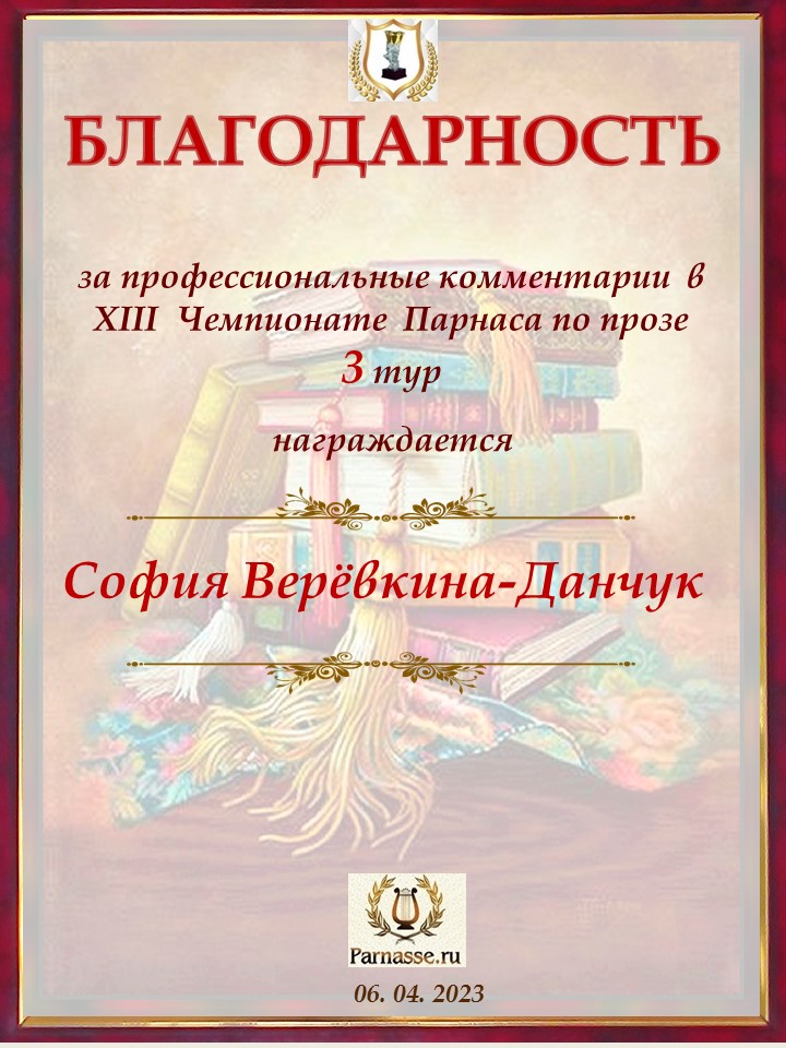Спасибо за профессиональные комментарии в 3 туре XIII Чемпионата Парнаса по прозе!
