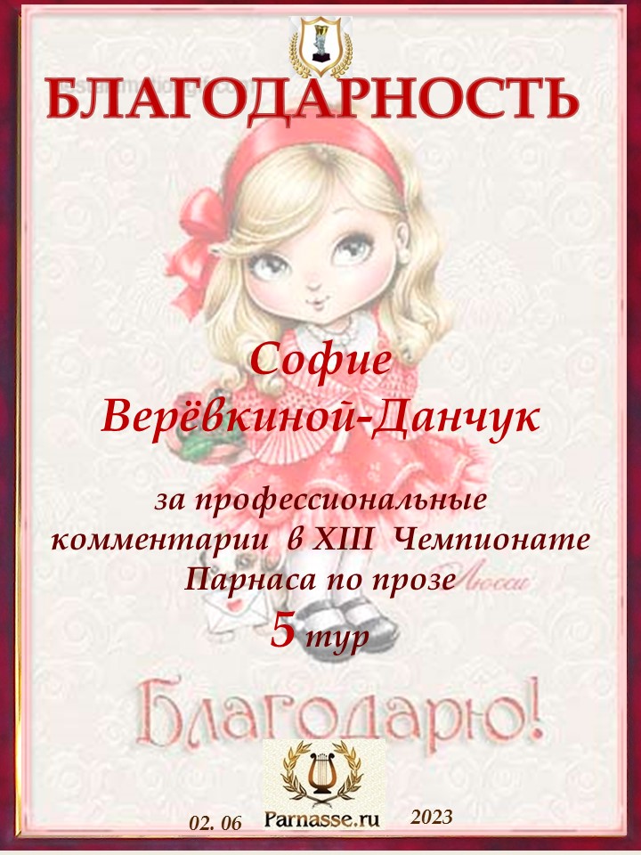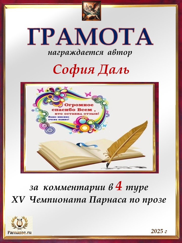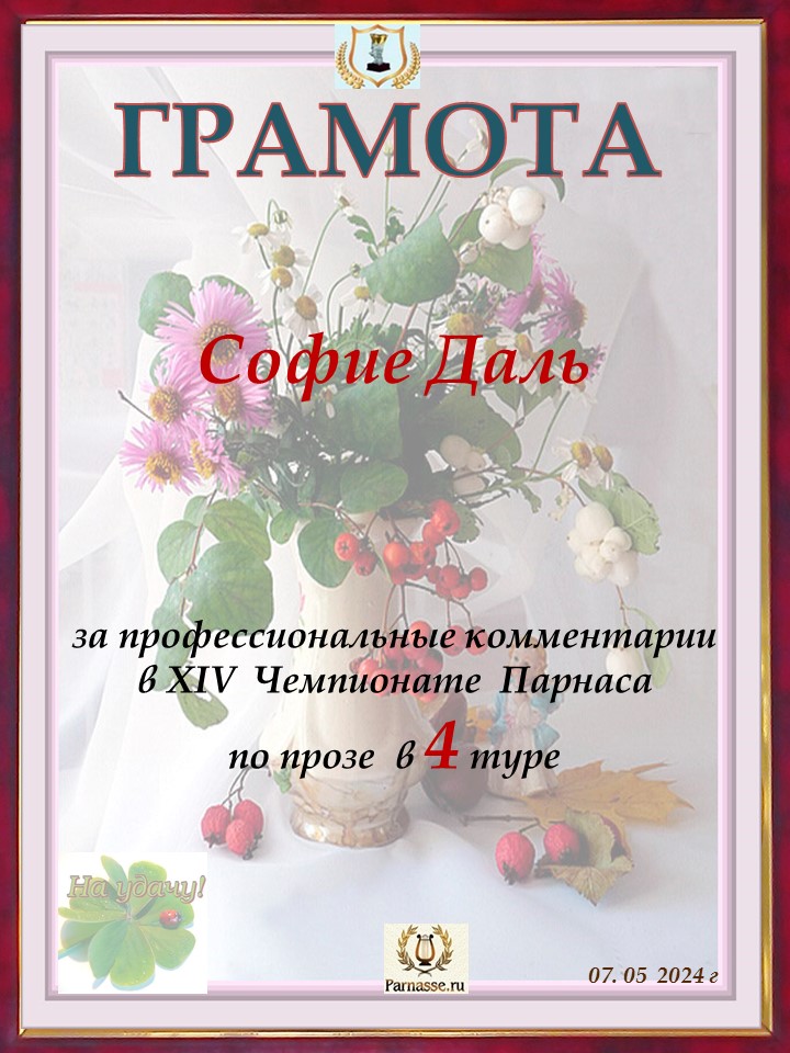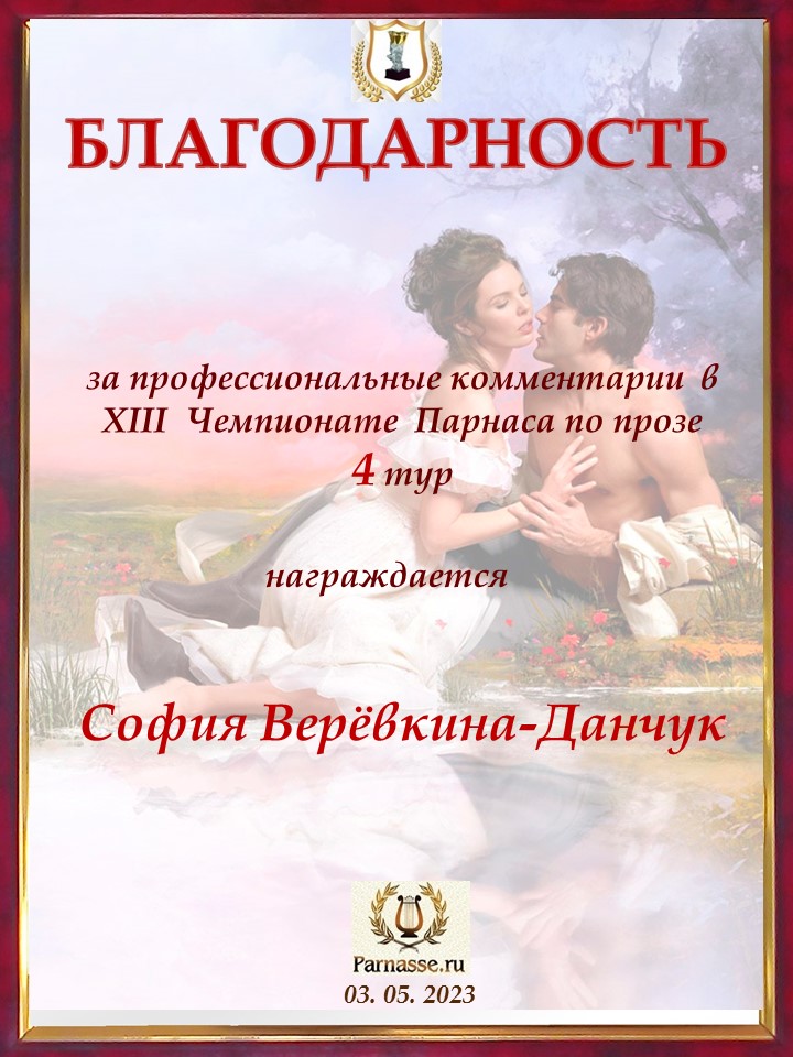 Спасибо за профессиональные комментарии в 4 туре XIII Чемпионата Парнаса по прозе!