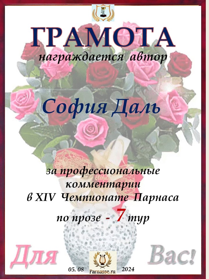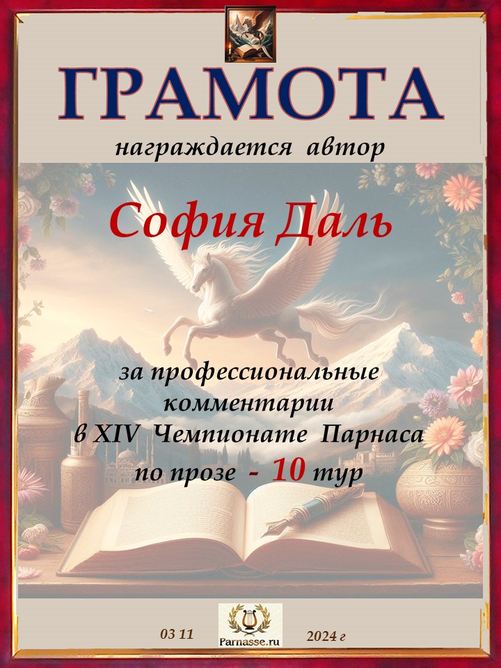 Большое спасибо за профессиональные и объективные комментарии в 7 туре X Чемпионата Парнаса по Прозе!