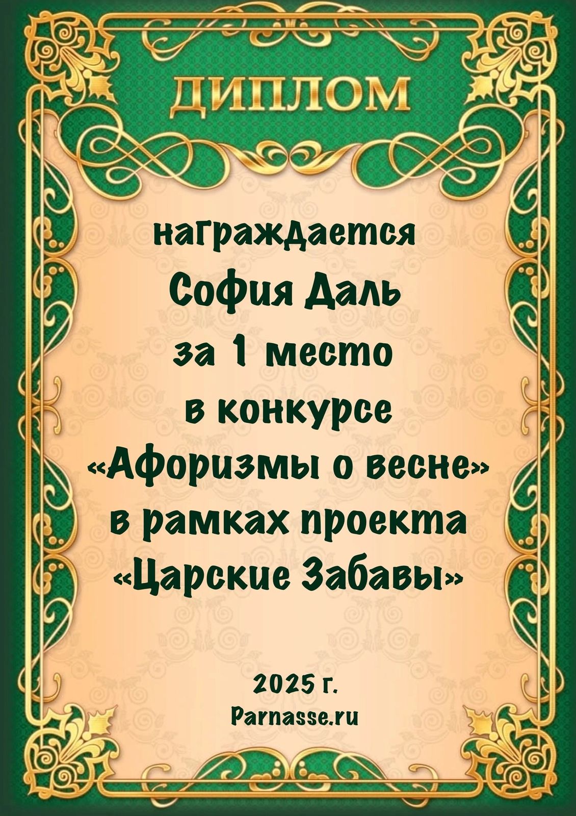 1 место в конкурсе "Афоризмы о весне". Поздравляем!