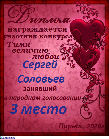 Второе место по итогам конкурса "А я стану душой твоей"