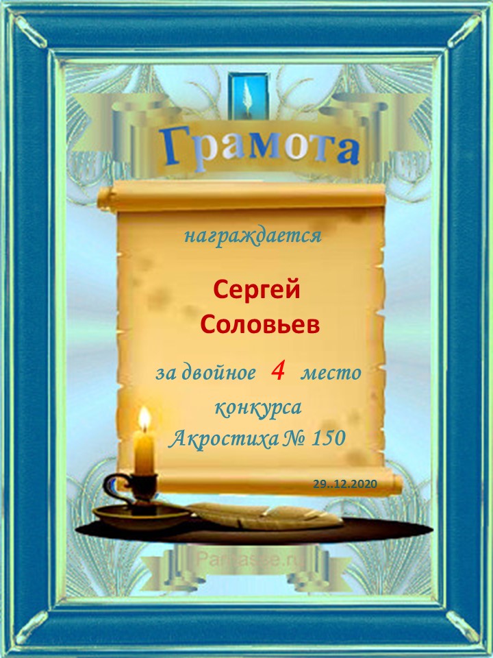 Грамота за двойное 4 место в 150 конкурсе АКРОСТИХА (Альтернатива)! ПОЗДРАВЛЯЮ!