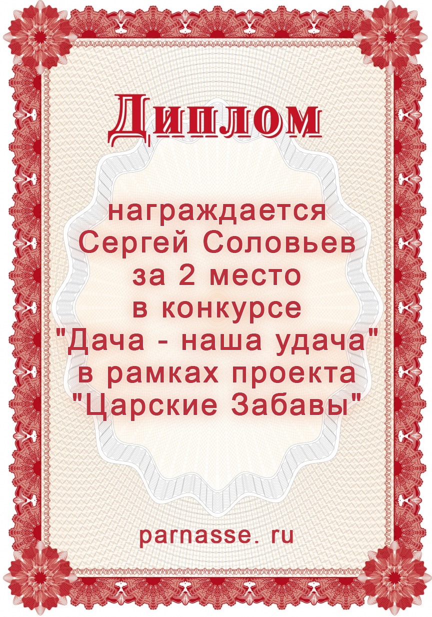 За 2 место в конкурсе "Дача - наша удача" в рамках проекта "Царские Забавы"