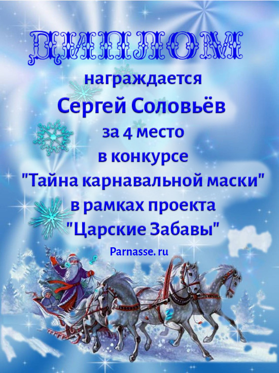 4 место в конкурсе "Тайна карнавальной маски" в рамках проекта "Царские Забавы"