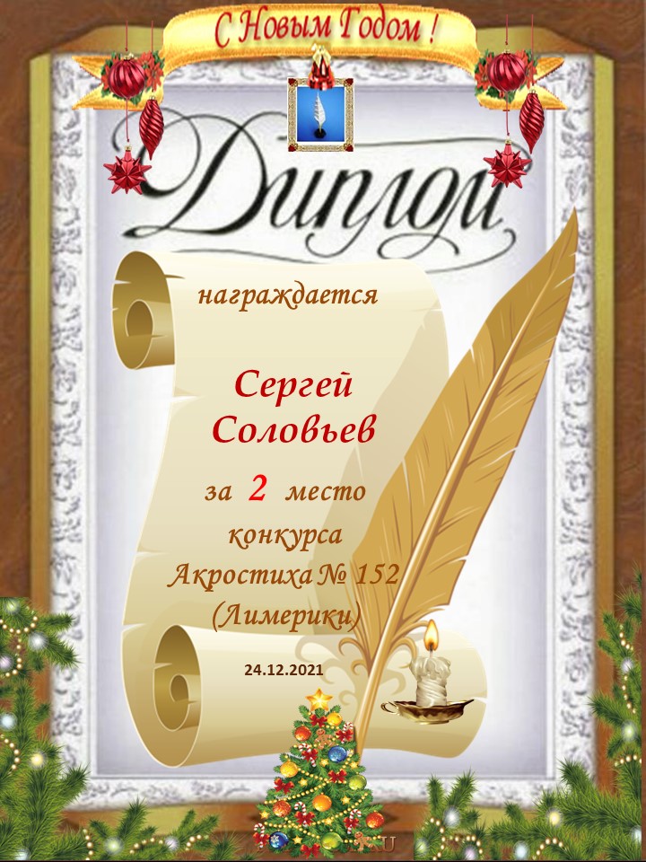 Диплом за 2 место в 152 конкурсе АКРОСТИХА (Альтернатива - лимерики)