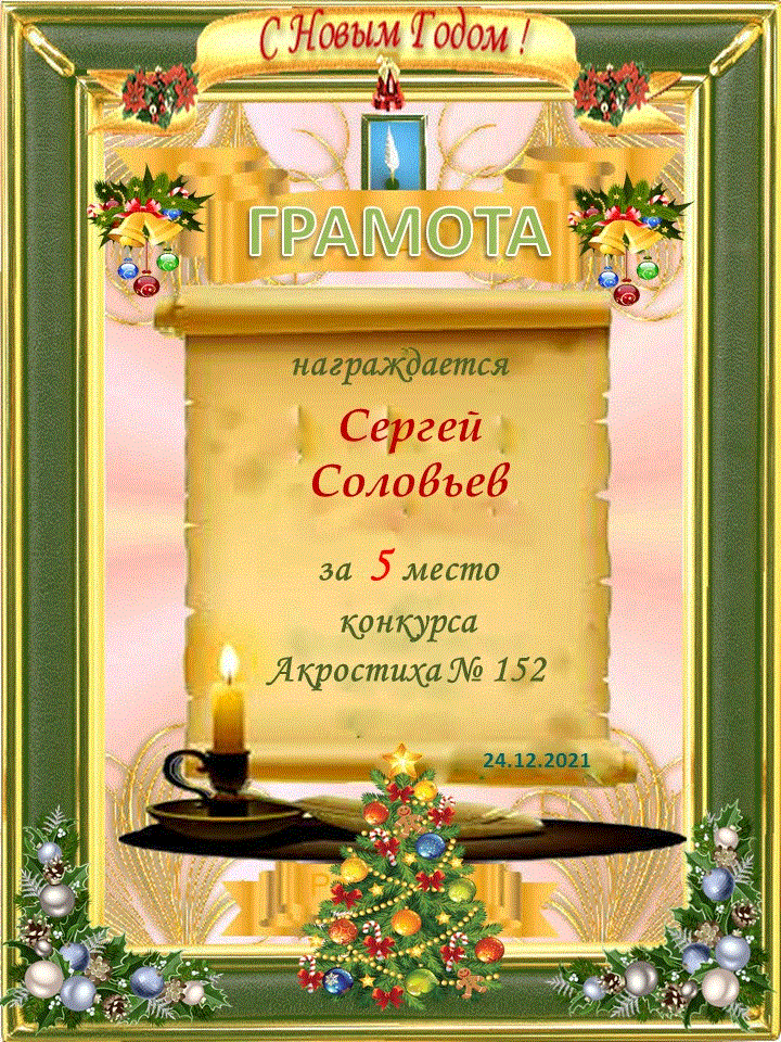 Грамота за 5 место в 146 конкурсе АКРОСТИХА (Альтернатива)! ПОЗДРАВЛЯЮ!
