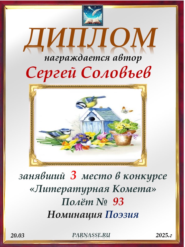 Поздравляю с занятым 3 местом в конкурсе "ЛитКомета - Полёт № 93" - Номинация Поэзия!