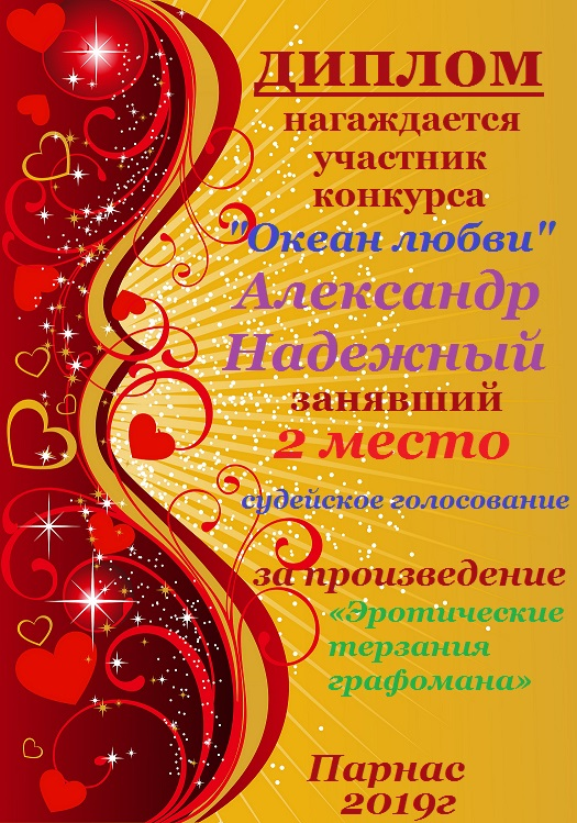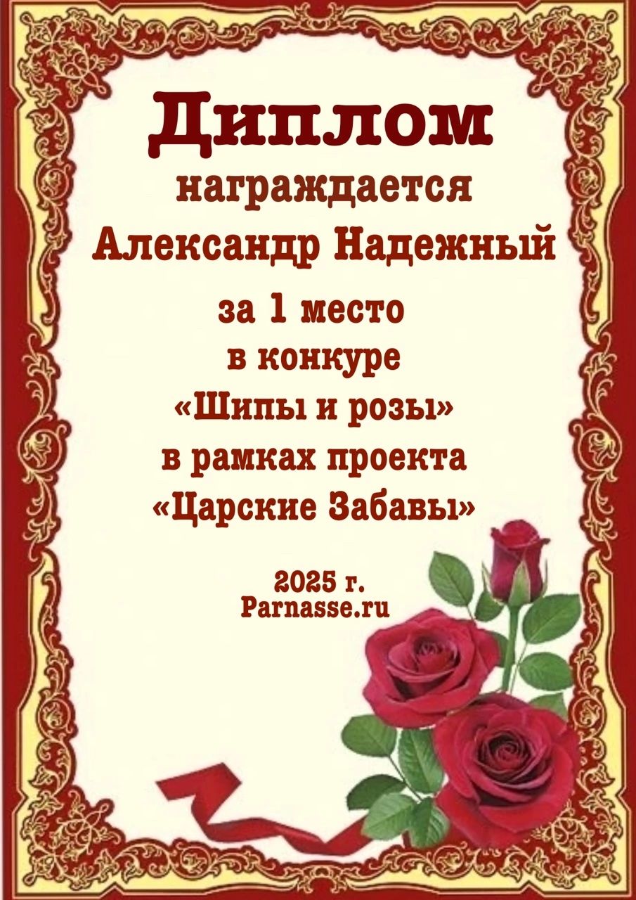 Уважаемый Александр! Сердечно благодарим Вас за материальную и моральную поддержку "Парнасу"! Мы, в свою очередь, желаем Вам здоровья, любви, творческого вдохновения и исполнения всех Ваших желаний! Спасибо за Ваше прекрасное, талантливое творчество!