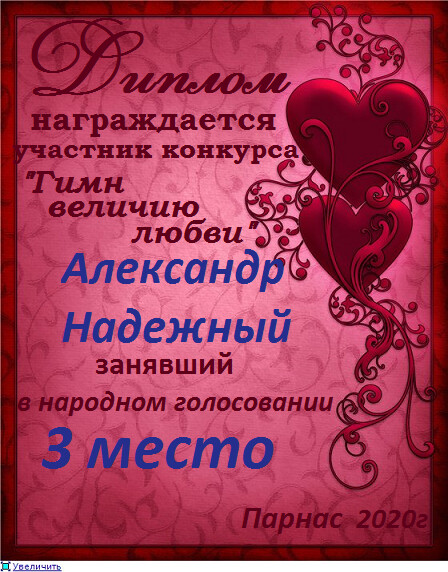 1 место в конкурсе "Поэзия чувств". Поздравляем!