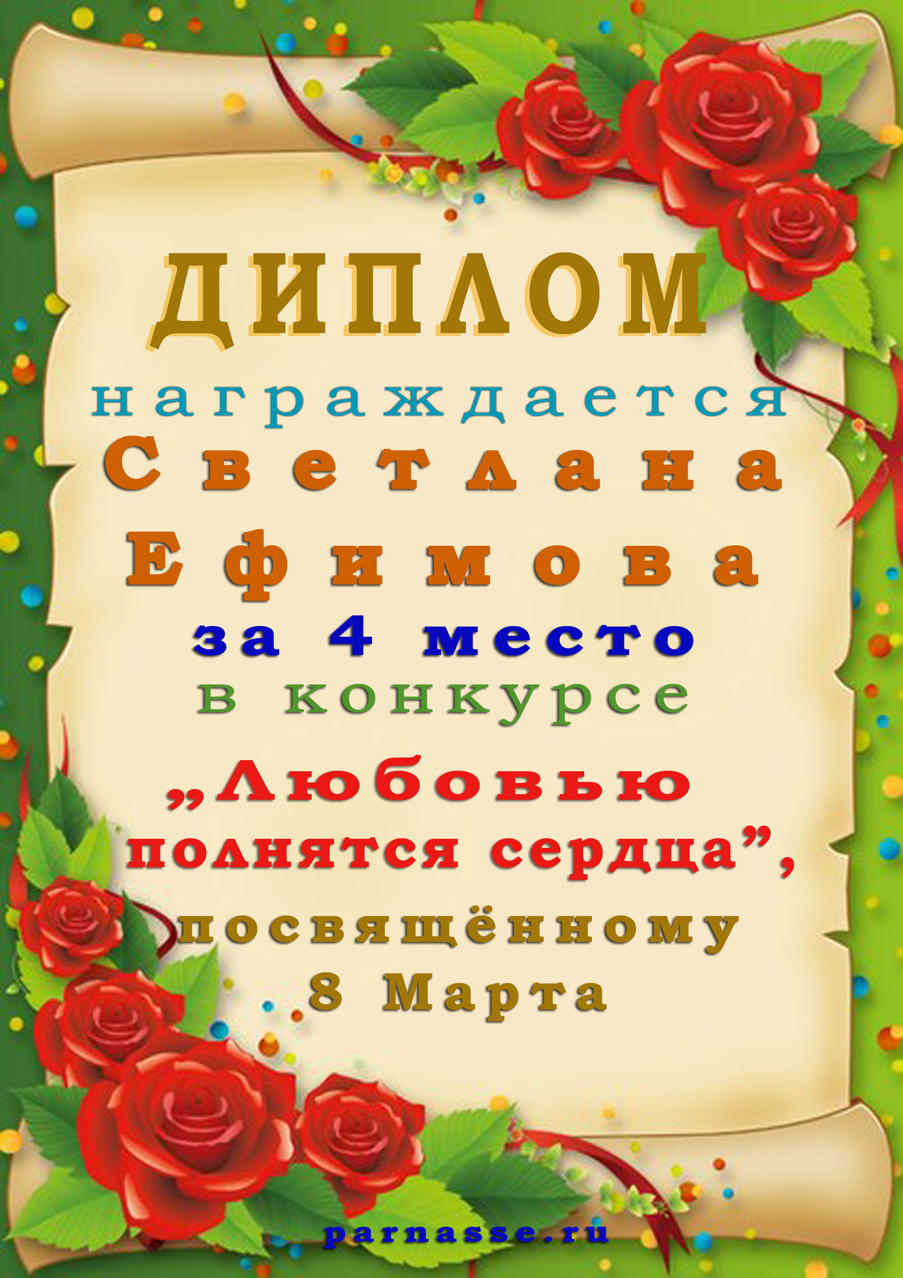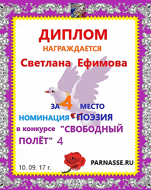 Грамота за 4 место в 109 конкурсе АКРОСТИХА (Альтернатива)! ПОЗДРАВЛЯЮ!