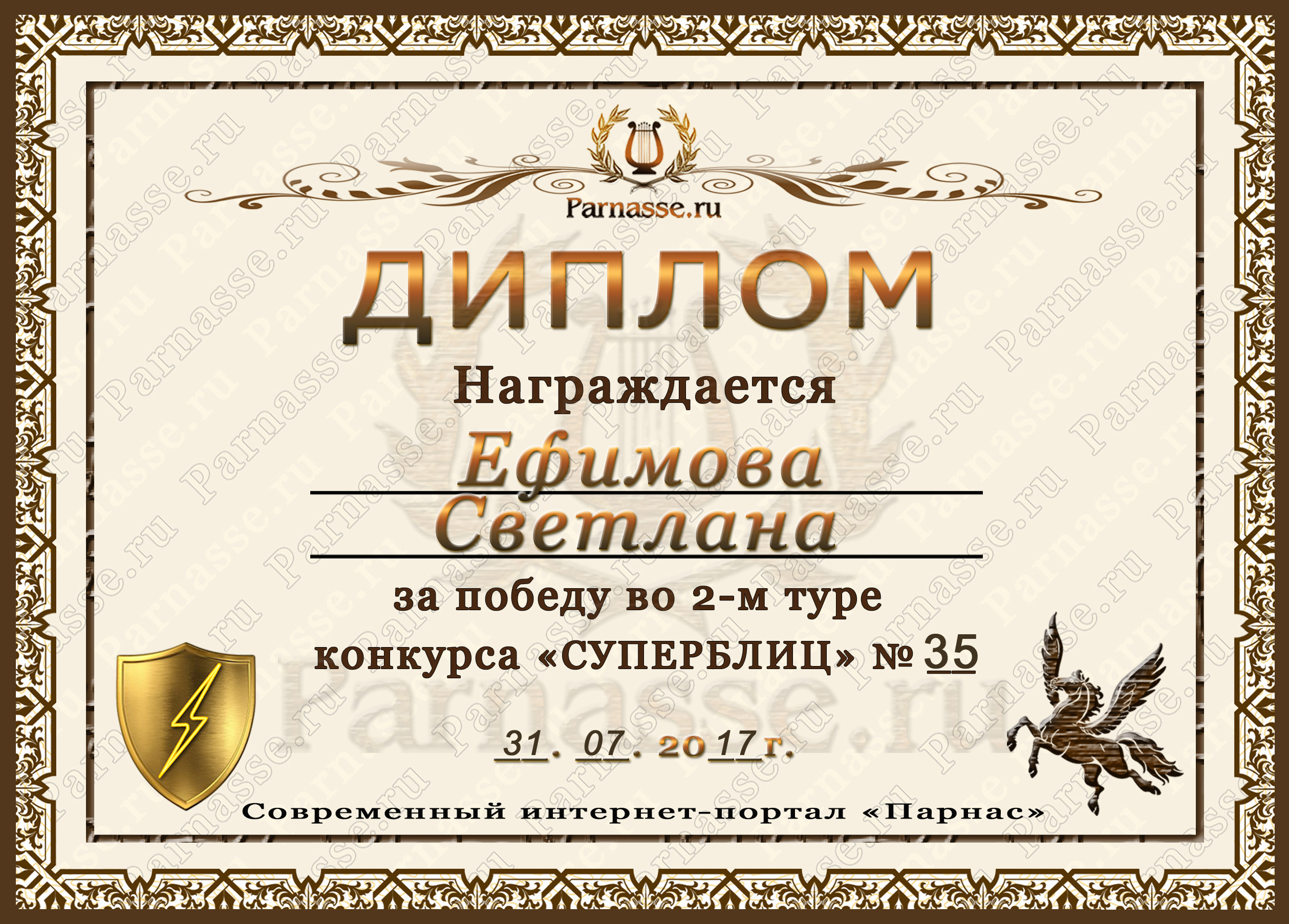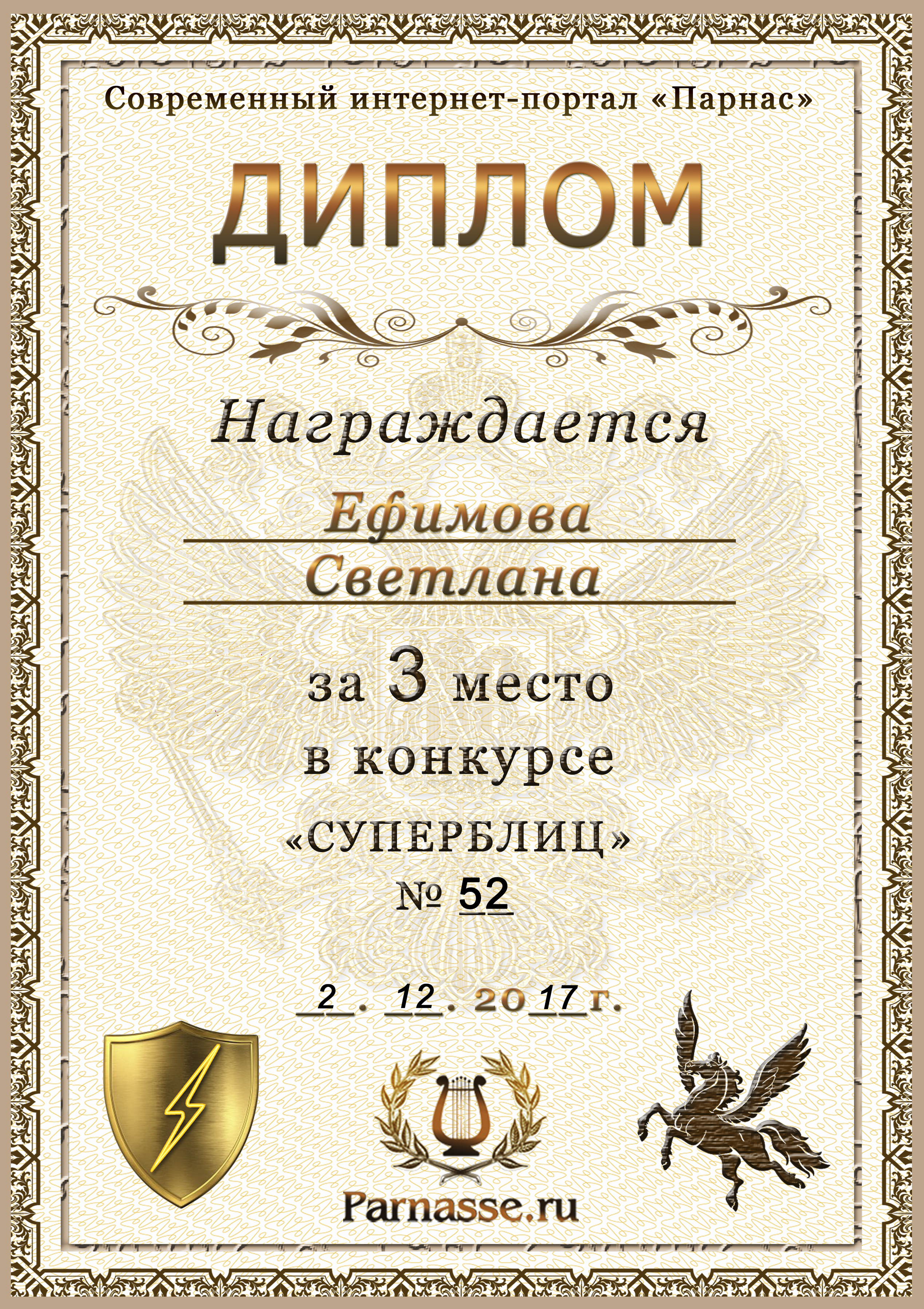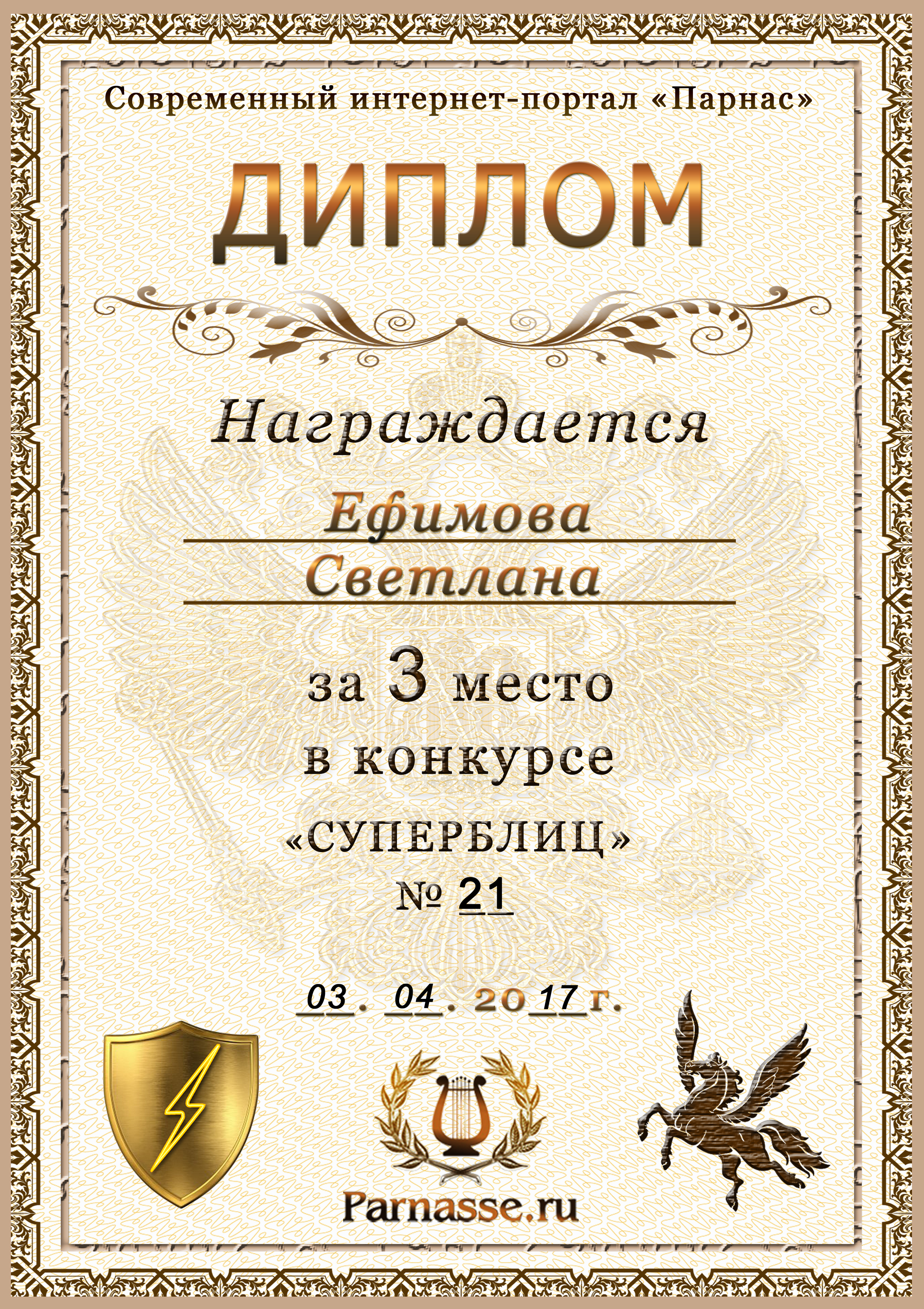 Диплом за 3 место во 2 туре (лимерики) в конкурсе СУПЕРБЛИЦА № 27!ПОЗДРАВЛЯЮ!