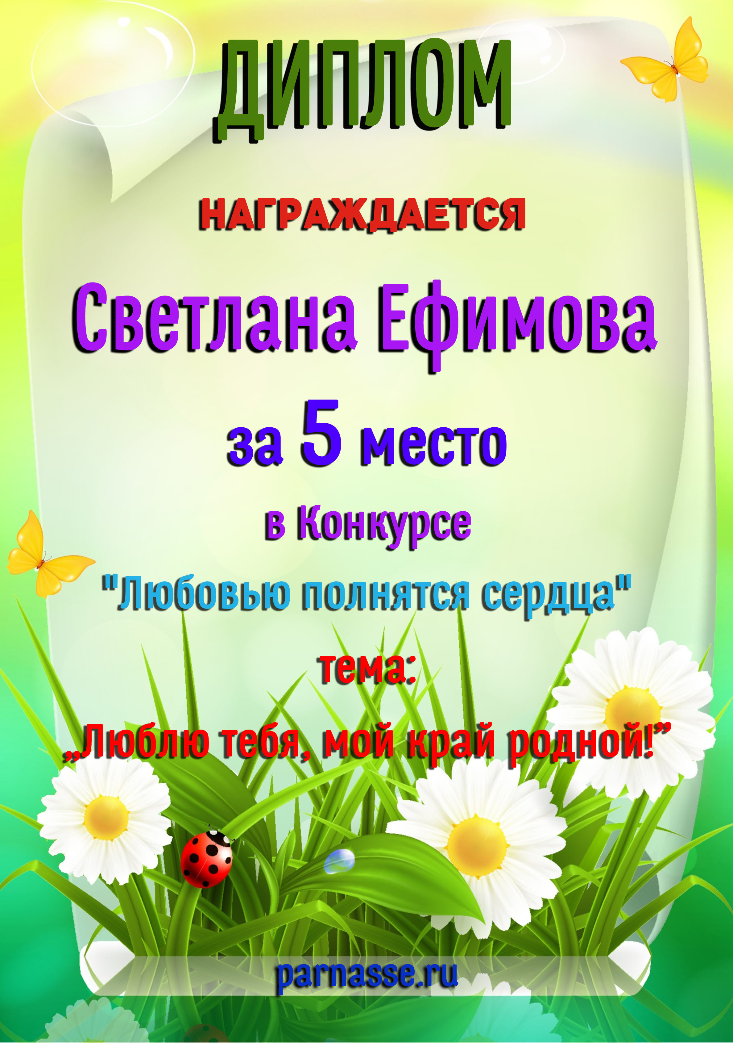 Грамота за 5 место в 116 конкурсе АКРОСТИХА (Альтернатива)! ПОЗДРАВЛЯЮ!
