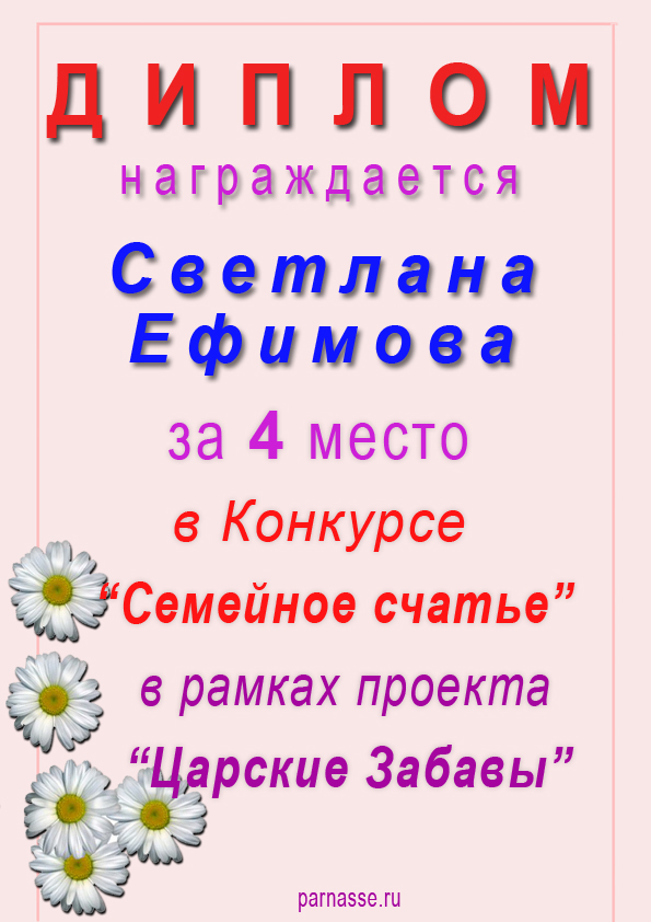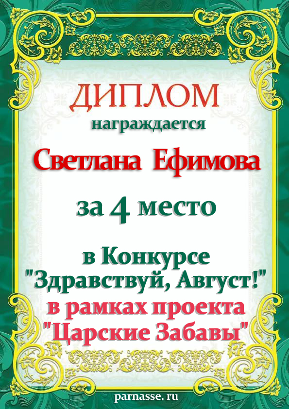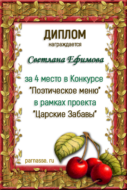 За 4 место в Конкурсе "Поэтическое меню" в рамках проекта "Царские Забавы"
