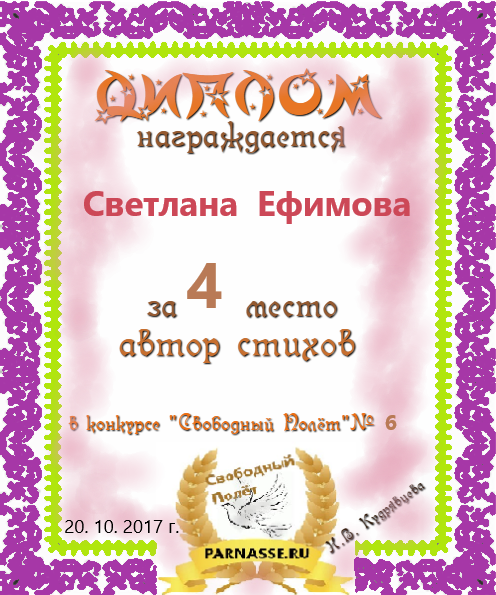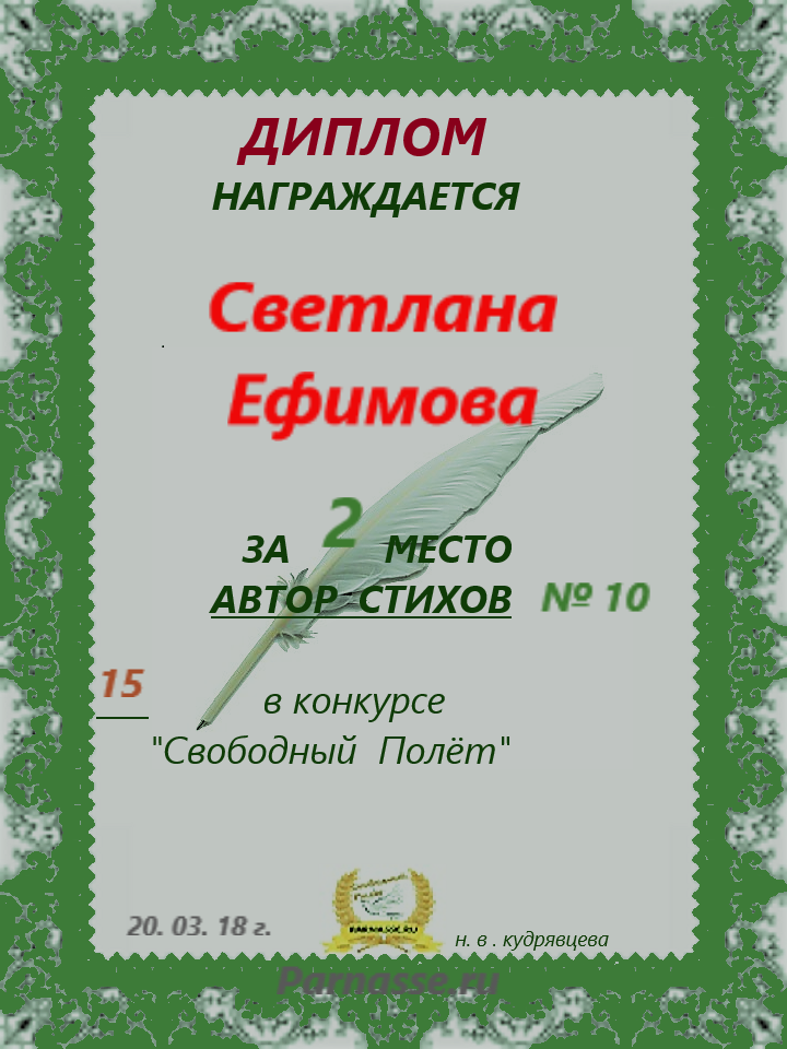 Диплом за 2 место в 110 конкурсе АКРОСТИХА (Альтернатива)! ПОЗДРАВЛЯЮ!