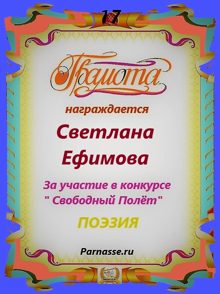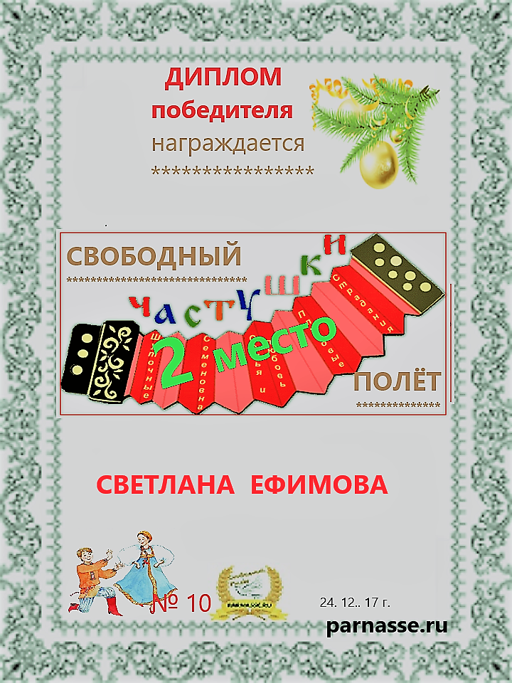 ![]() серебряный кубок за 2 место в конкурсе "Свободный Полёт" № 10
