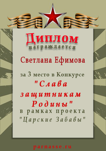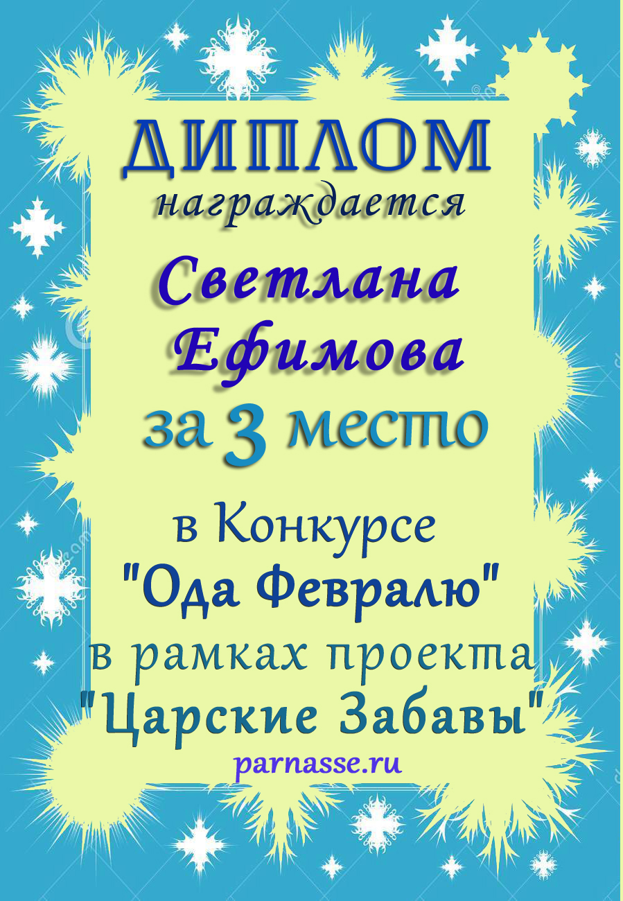 За 3 место в Конкурсе "Ода Февралю" в рамках проекта "Царские забавы"
