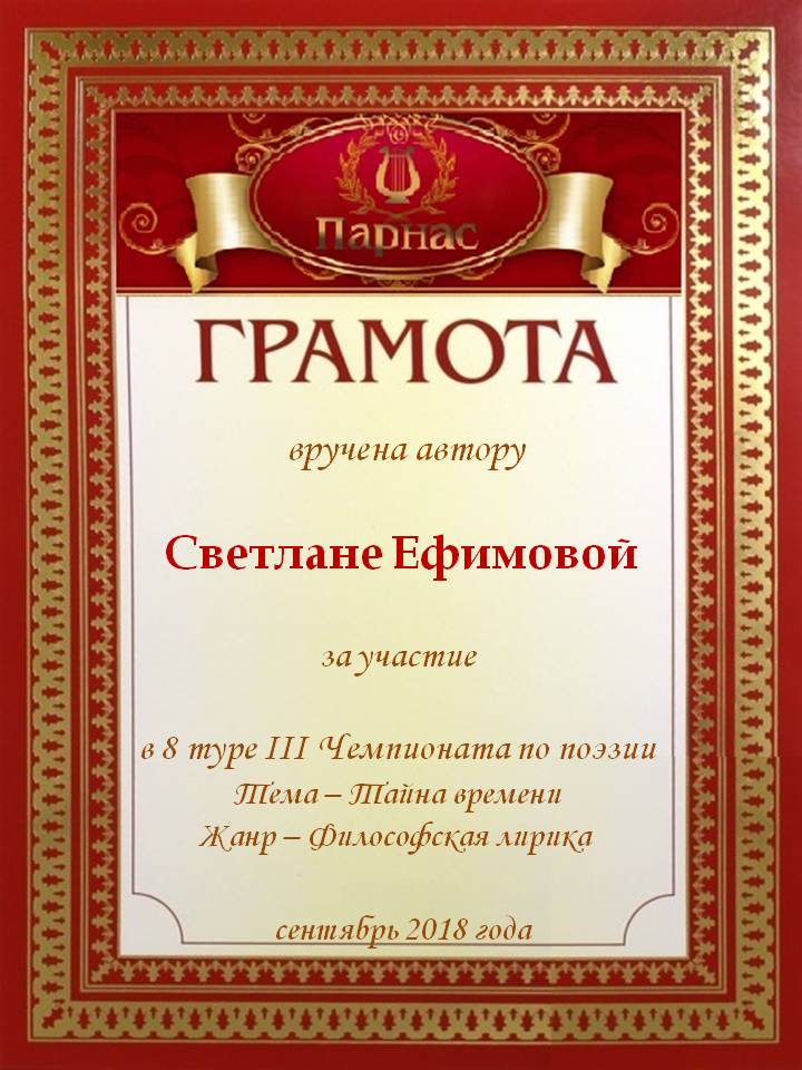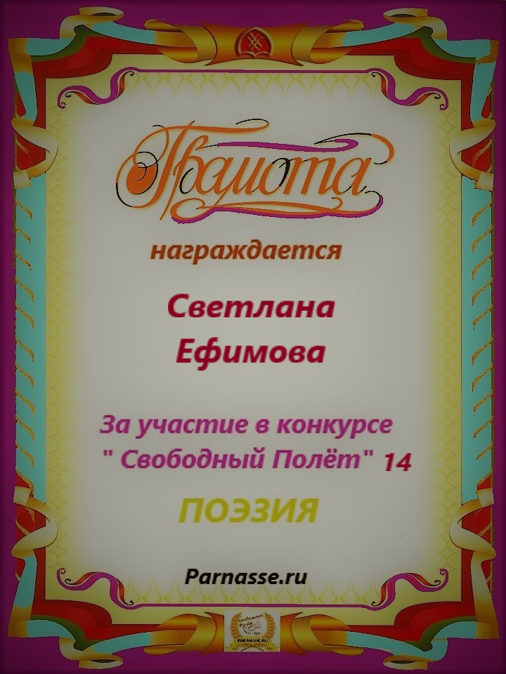 Уважаемая Светлана Николаевна! Сердечно благодарим Вас за оказанную в трудную минуту финансовую помощь Парнасу и содействие, выражаем Вам своё уважение и признательность за неравнодушие и доброту.