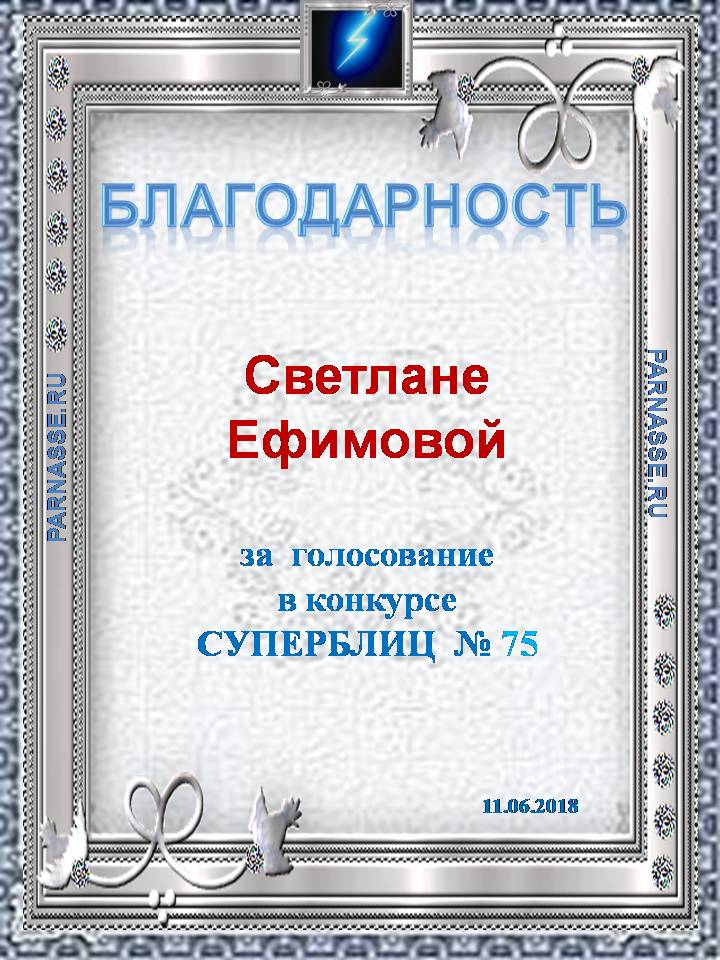 Благодарность за активное голосование в 75 конкурсе СУПЕРБЛИЦА!СПАСИБО БОЛЬШОЕ!