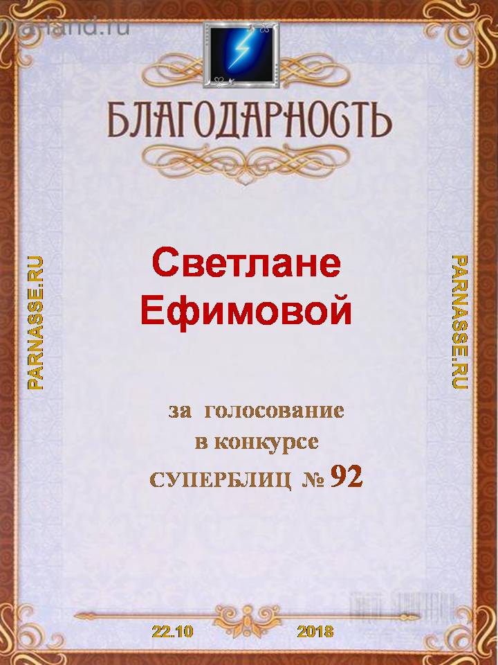 Благодарность за активное голосование в 92 конкурсе СУПЕРБЛИЦА!СПАСИБО БОЛЬШОЕ!