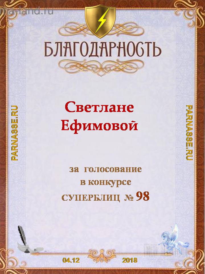 Благодарность за активное голосование в 98 конкурсе СУПЕРБЛИЦА!СПАСИБО БОЛЬШОЕ!