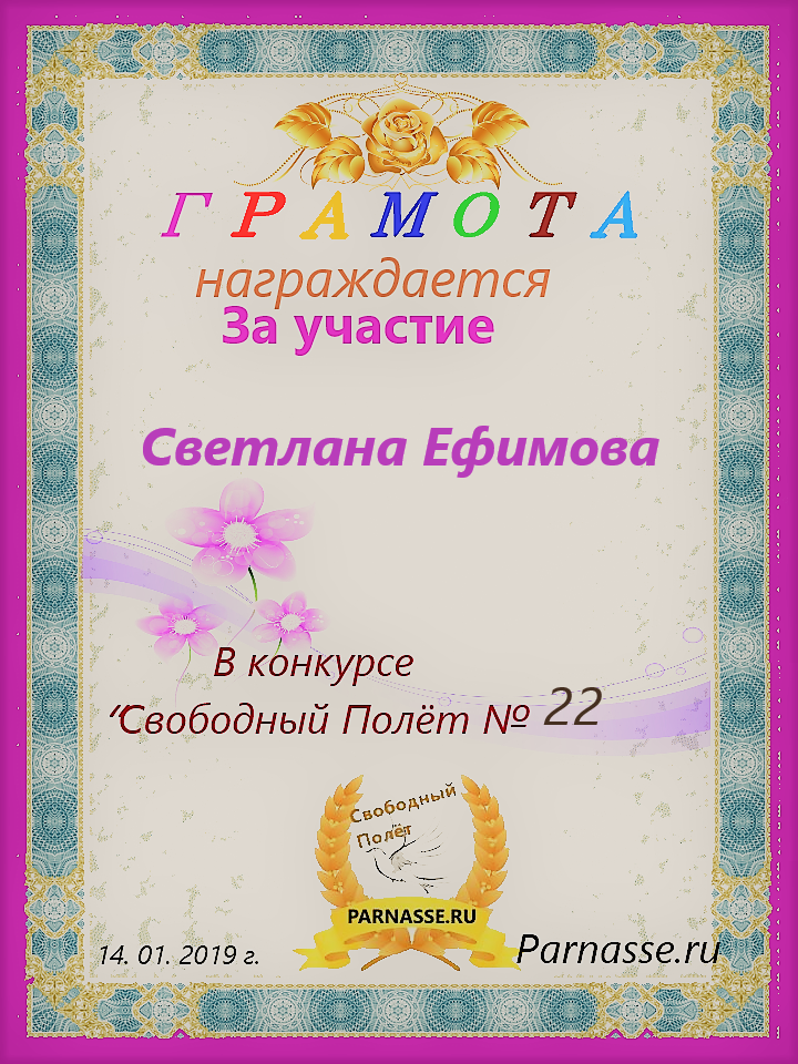 за 1 место в конкурсе "Свободный Полёт" № 19.