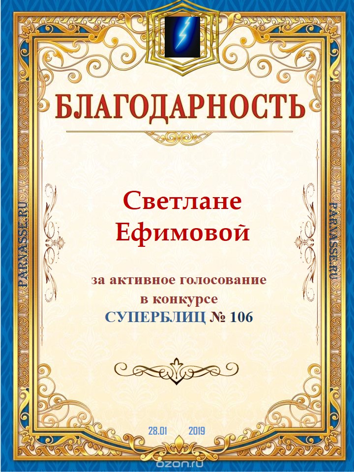 Благодарность за активное голосование в 106 конкурсе СУПЕРБЛИЦА!СПАСИБО БОЛЬШОЕ!
