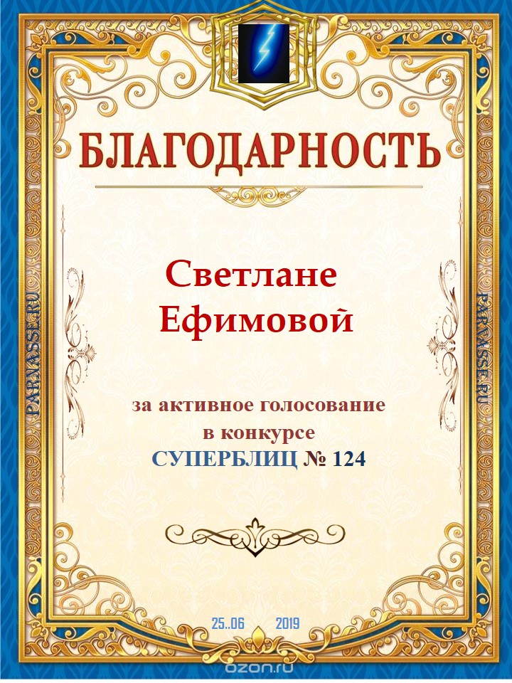 Благодарность за активное голосование в 124 конкурсе СУПЕРБЛИЦА!СПАСИБО БОЛЬШОЕ!
