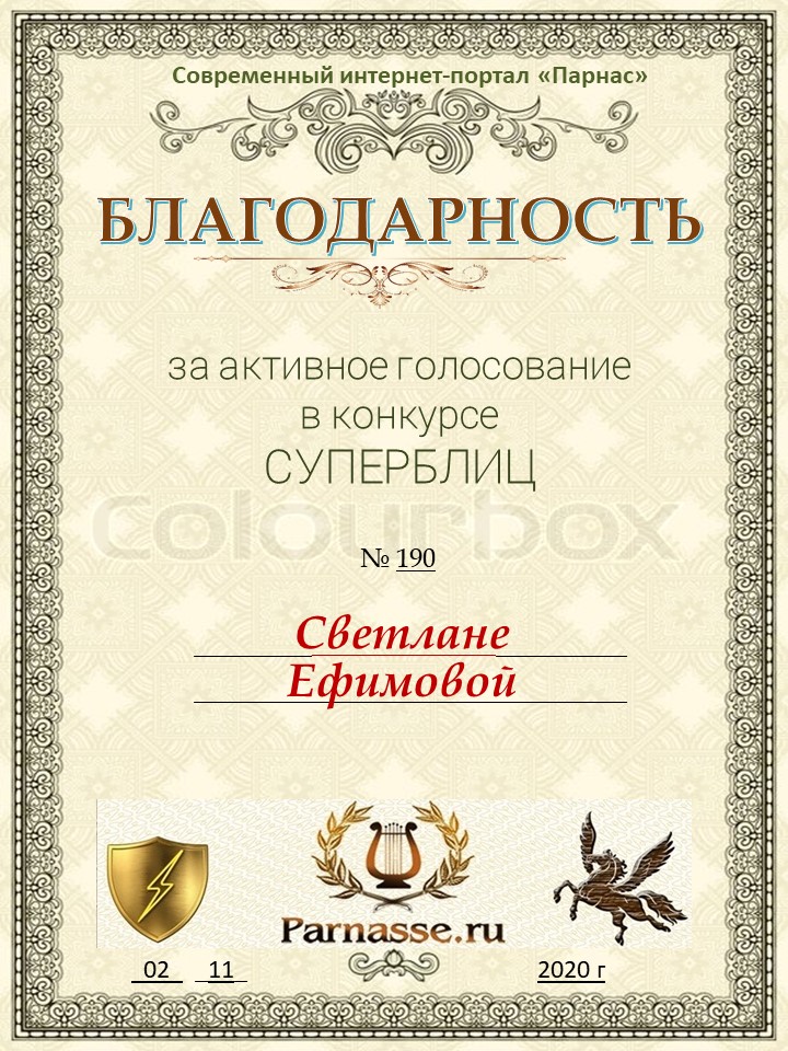 Благодарность за активное голосование в 190 конкурсе СУПЕРБЛИЦА!СПАСИБО БОЛЬШОЕ!
