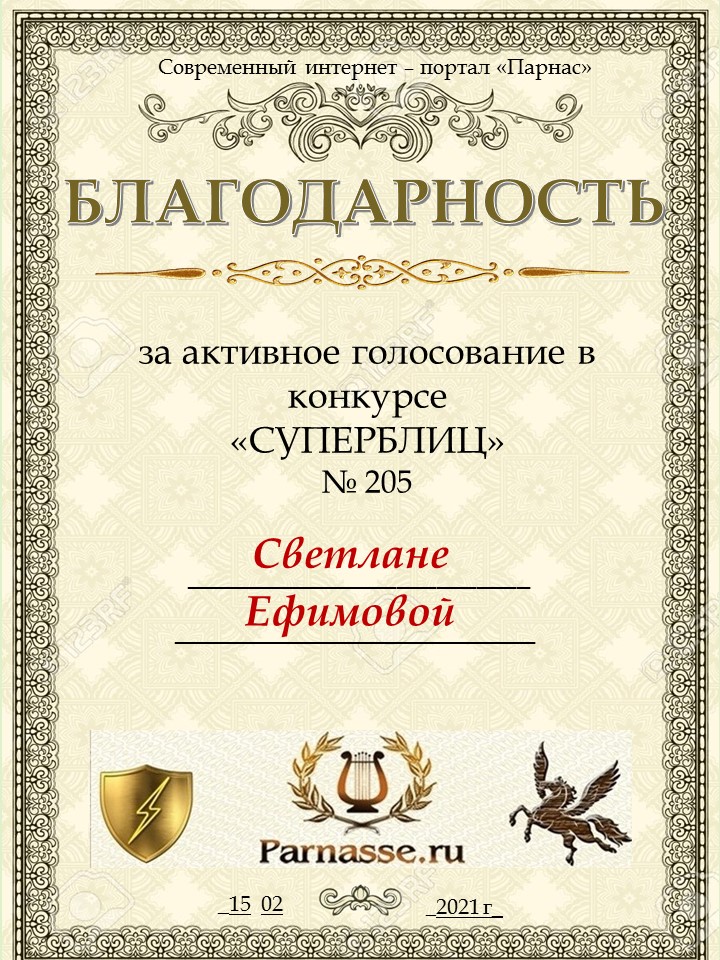Благодарность за активное голосование в 205 конкурсе СУПЕРБЛИЦА!СПАСИБО БОЛЬШОЕ!