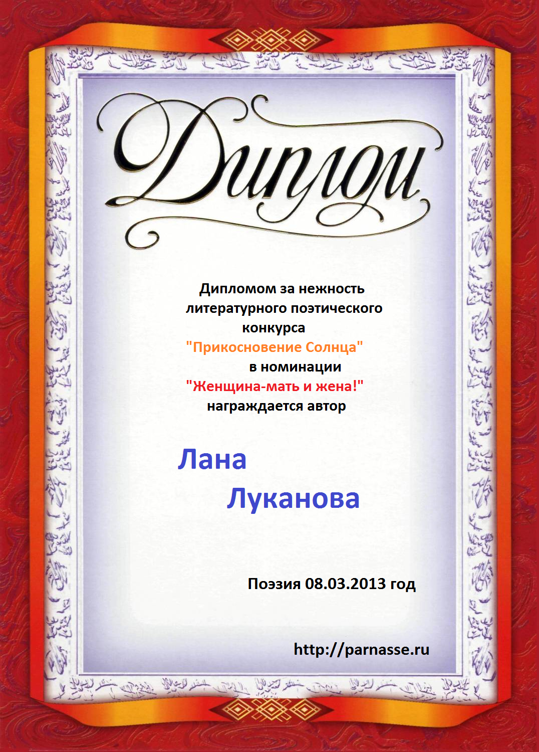Диплом в конкурсе поэзии "Прикосновение Солнца"