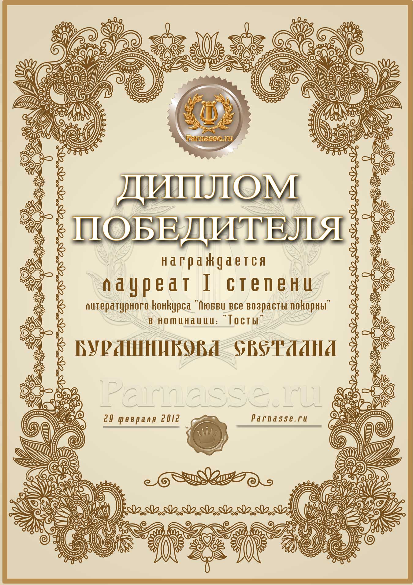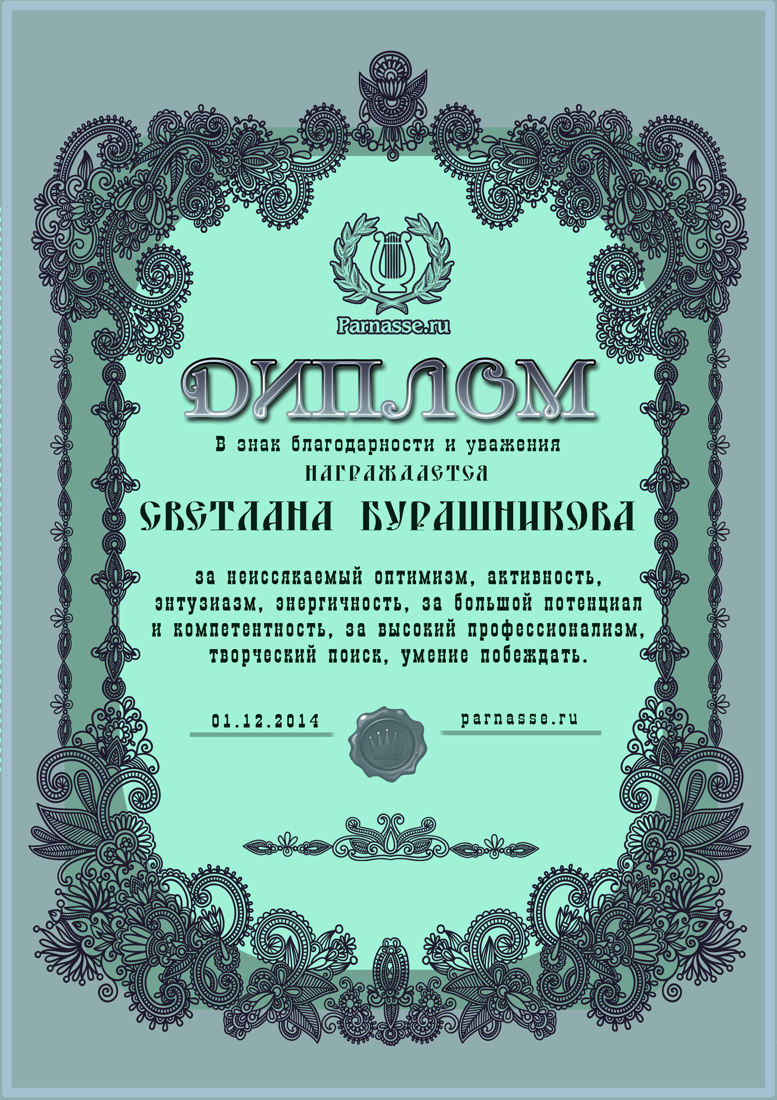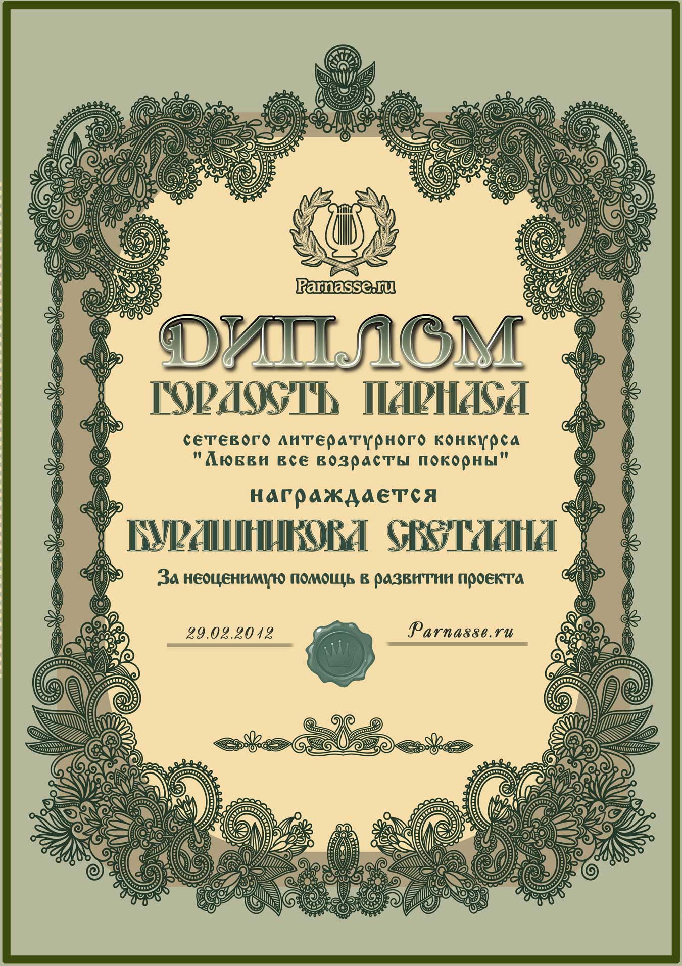 Диплом "Гордость Парнаса"