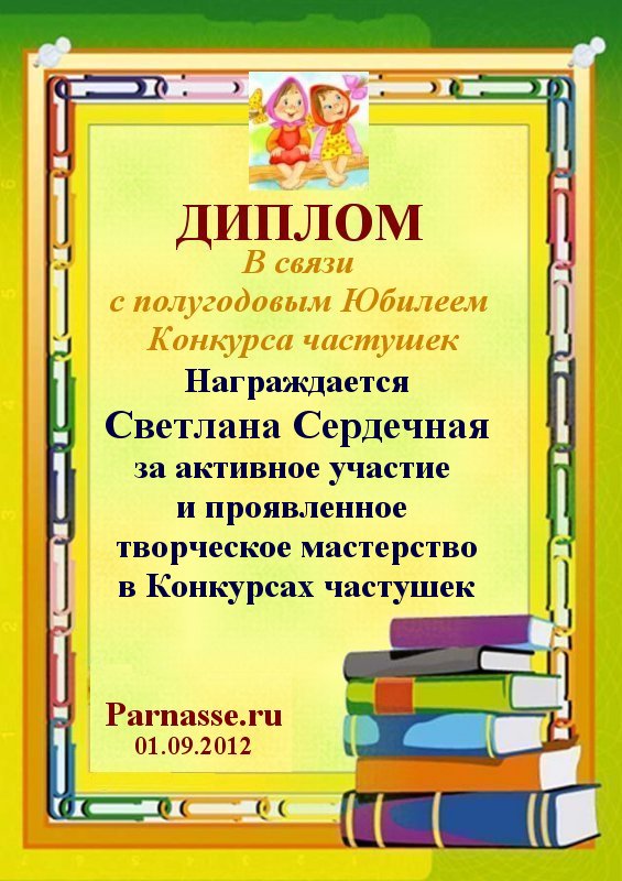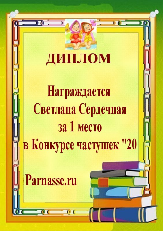 Третье место в анонимном конкурсе "Очень весёлые частушки" за произведение " Навострите ваши ушки"! Поздравляем, Светлана, с красивой победой в конкурсе!