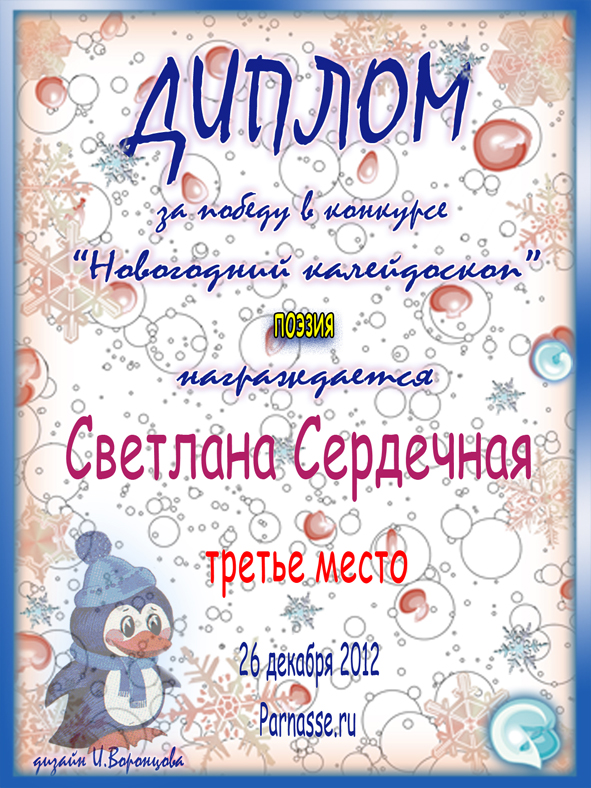 От лица Администрации творческого портала "Парнас" вручаем Вам этот памятный знак с самыми наилучшими пожеланиями! Пусть Вас весь год не покидает творческий запал, удача, а здоровье будет столь же крепким и нерушимым, как и традиция Новогоднего праздника! Счастья, успехов и любви Вам и Вашей семье, друзьям и близким!