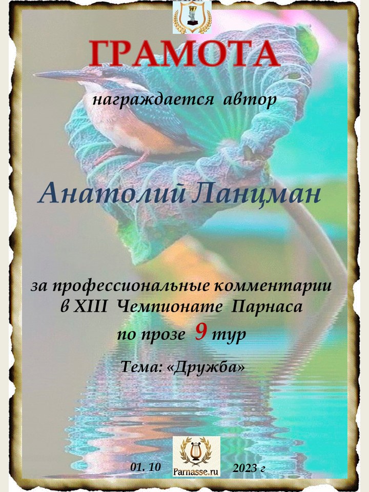 Спасибо за профессиональные комментарии в 9 туре XIII Чемпионата Парнаса по прозе!