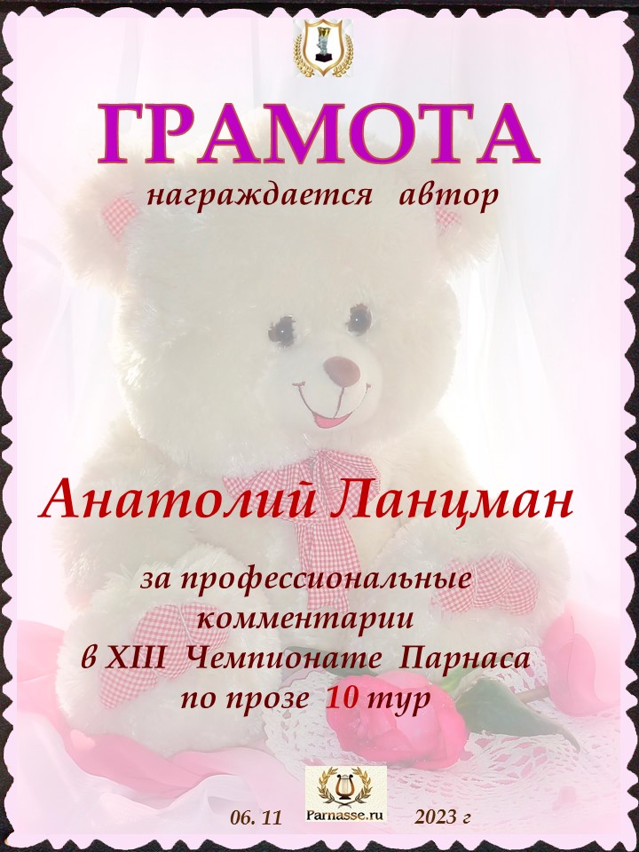 Спасибо за профессиональные комментарии в 10 туре XIII Чемпионата Парнаса по прозе!