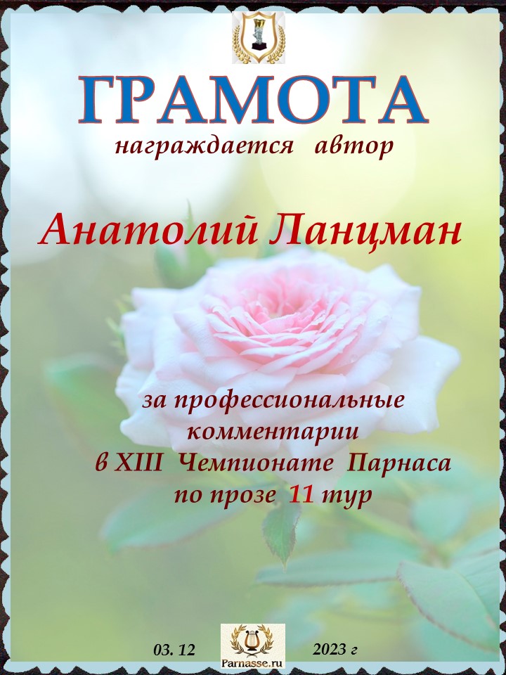 Спасибо за профессиональные комментарии в 11 туре XIII Чемпионата Парнаса по прозе!