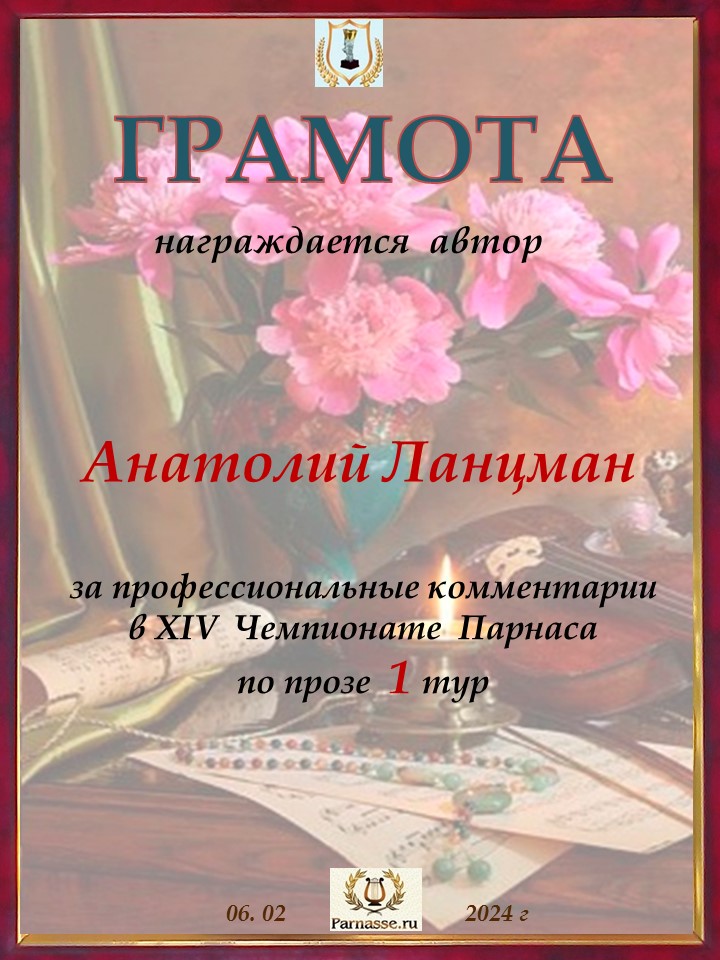 Спасибо за профессиональные комментарии в 1 туре XIV Чемпионата Парнаса по прозе!