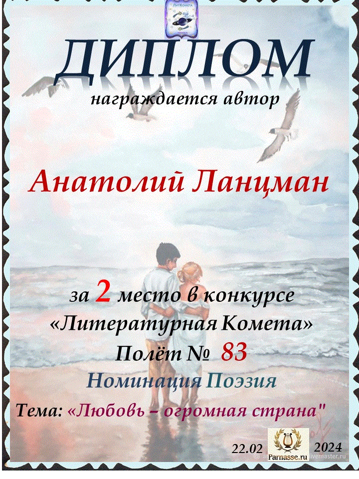 Поздравляю с занятым 2 местом в конкурсе "ЛитКомета - Полёт № 83" - Номинация Поэзия!