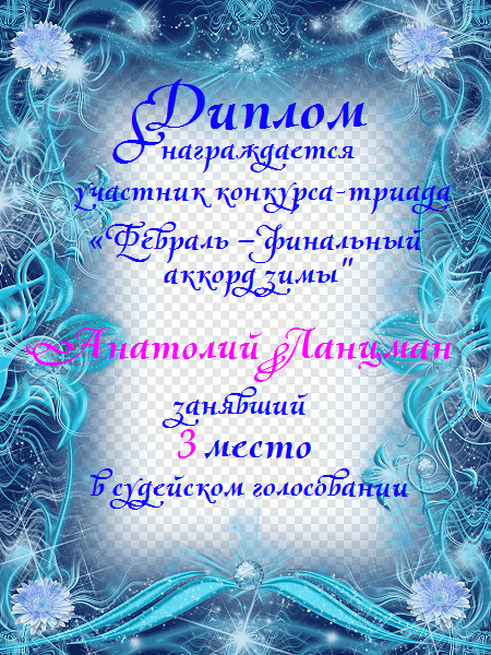 Третье место по итогам конкурса - триада "Февраль - финальный аккорд зимы"