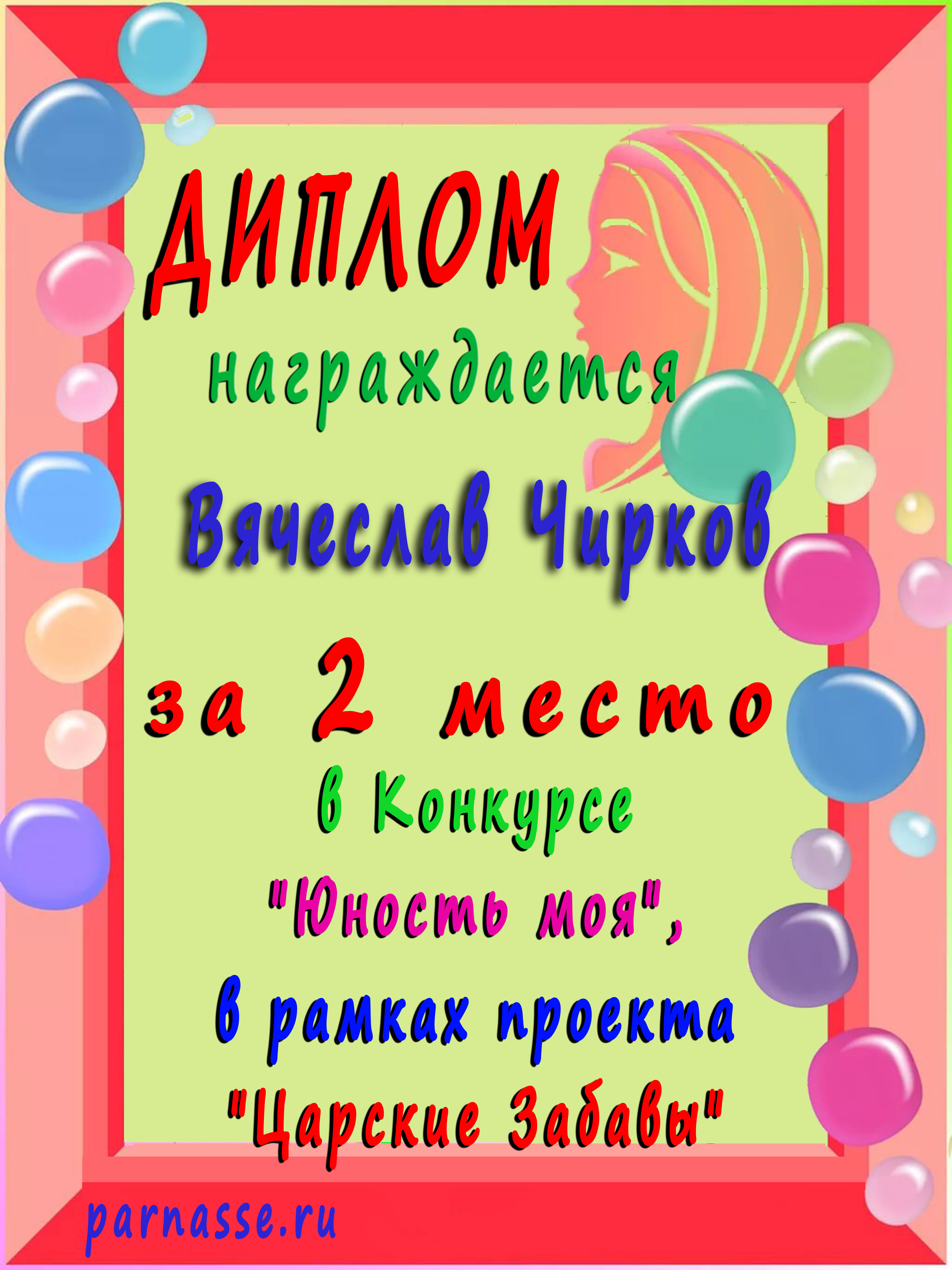 За 2 место в Конкурсе "Юность моя"