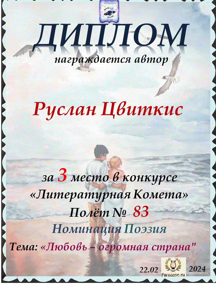 Поздравляю с занятым 3 местом в конкурсе "ЛитКомета - Полёт № 83" - Номинация Поэзия!
