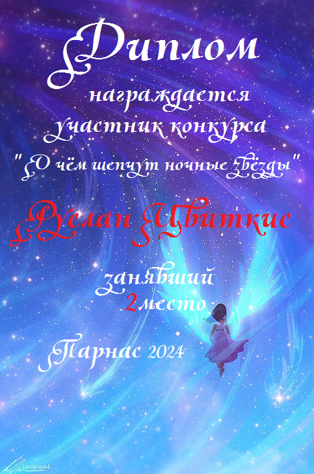 Второе место в судейском голосовании по итогам конкурса «О чём ночами шепчут звёзды»