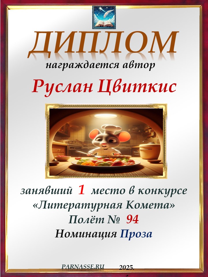 Поздравляю с занятым 1 местом в конкурсе "ЛитКомета - Полёт № 94" - Номинация Проза!