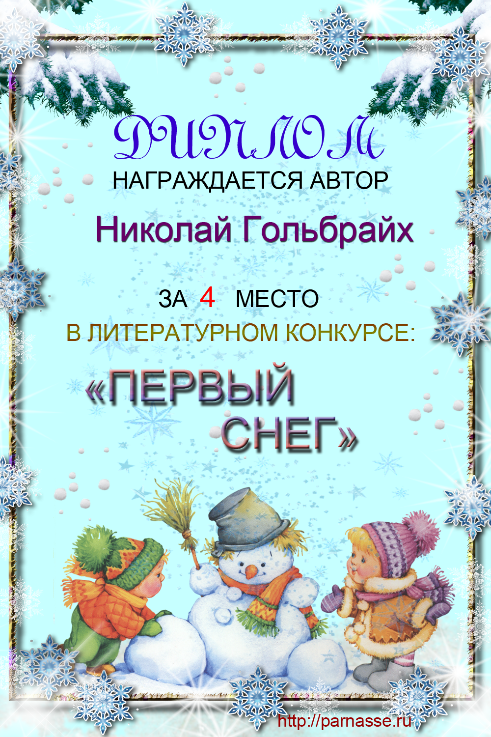 Диплом за 4 место в конкурсе "Первый снег"