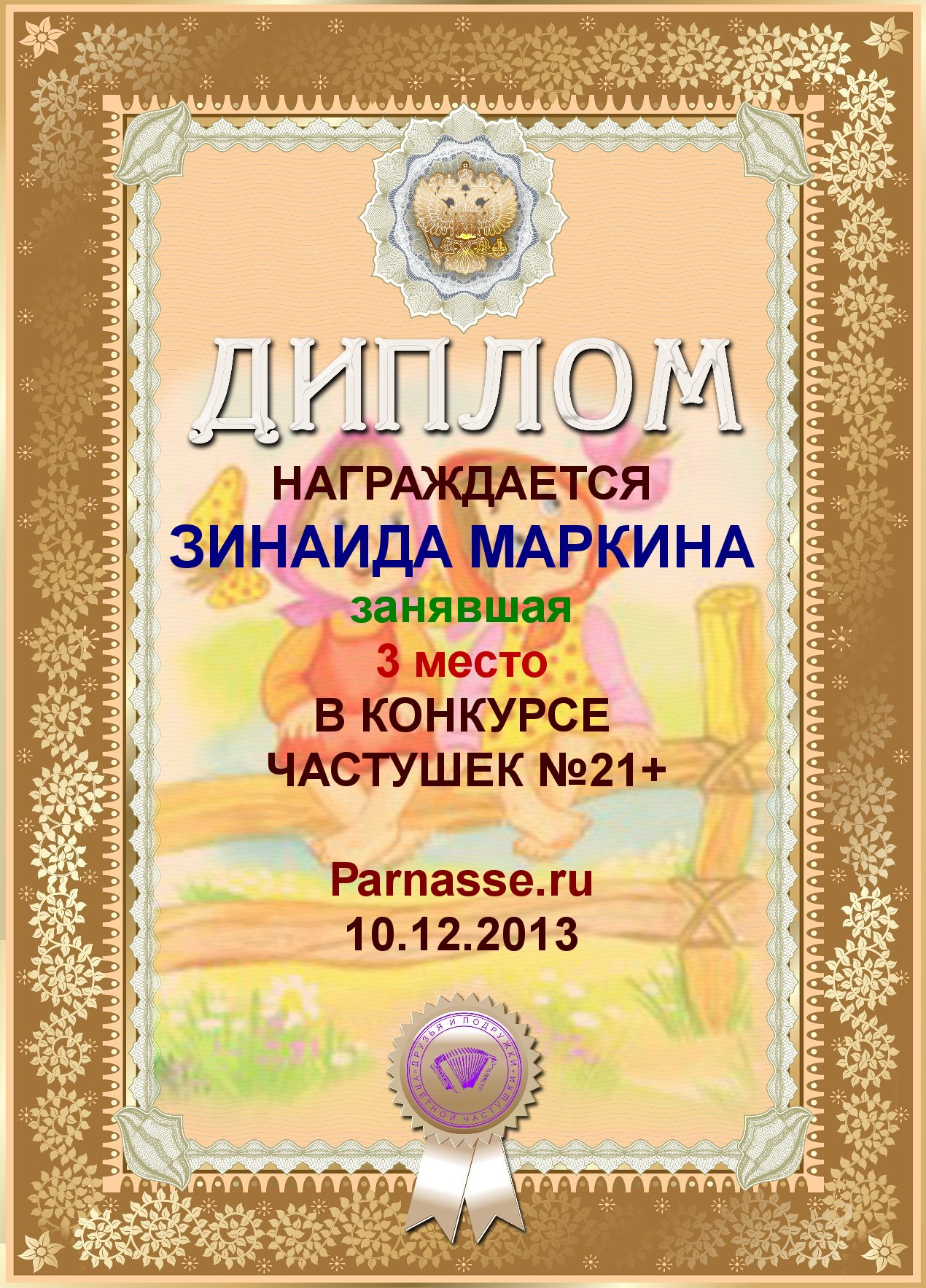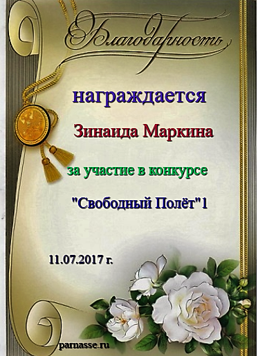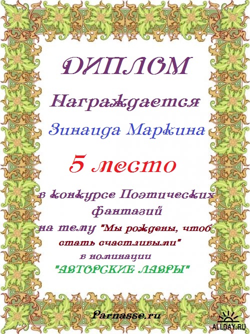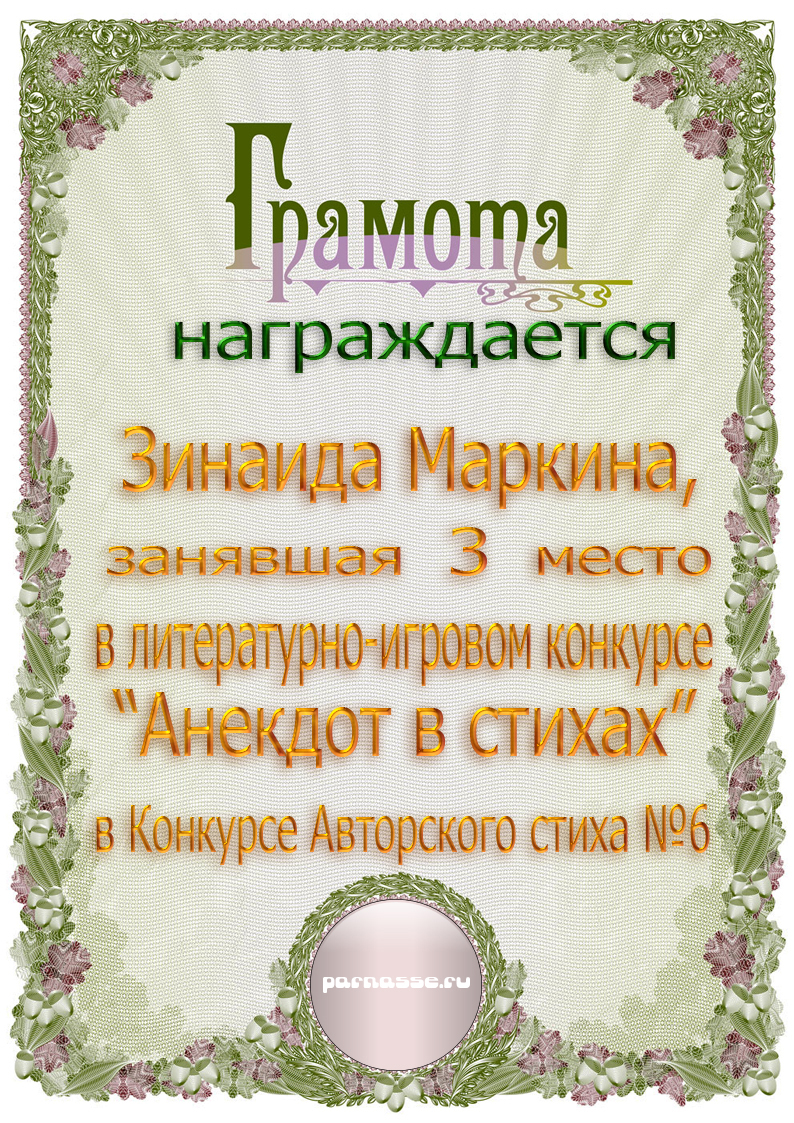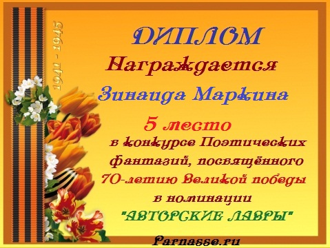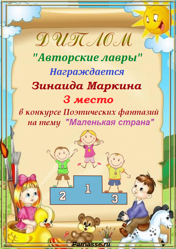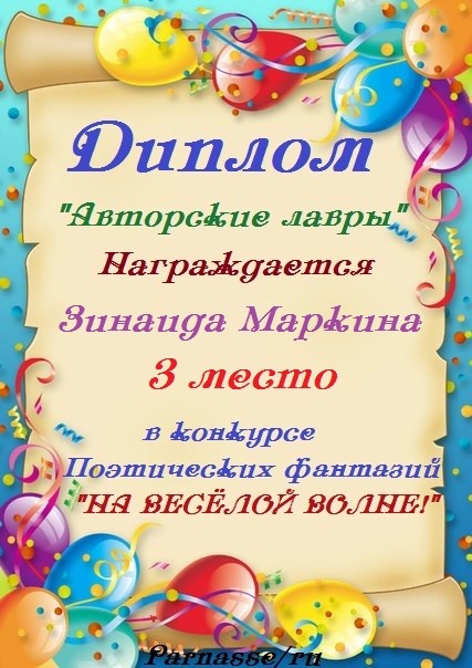 ![]() медаль за 3 место в конкурсе Поэтических фантази