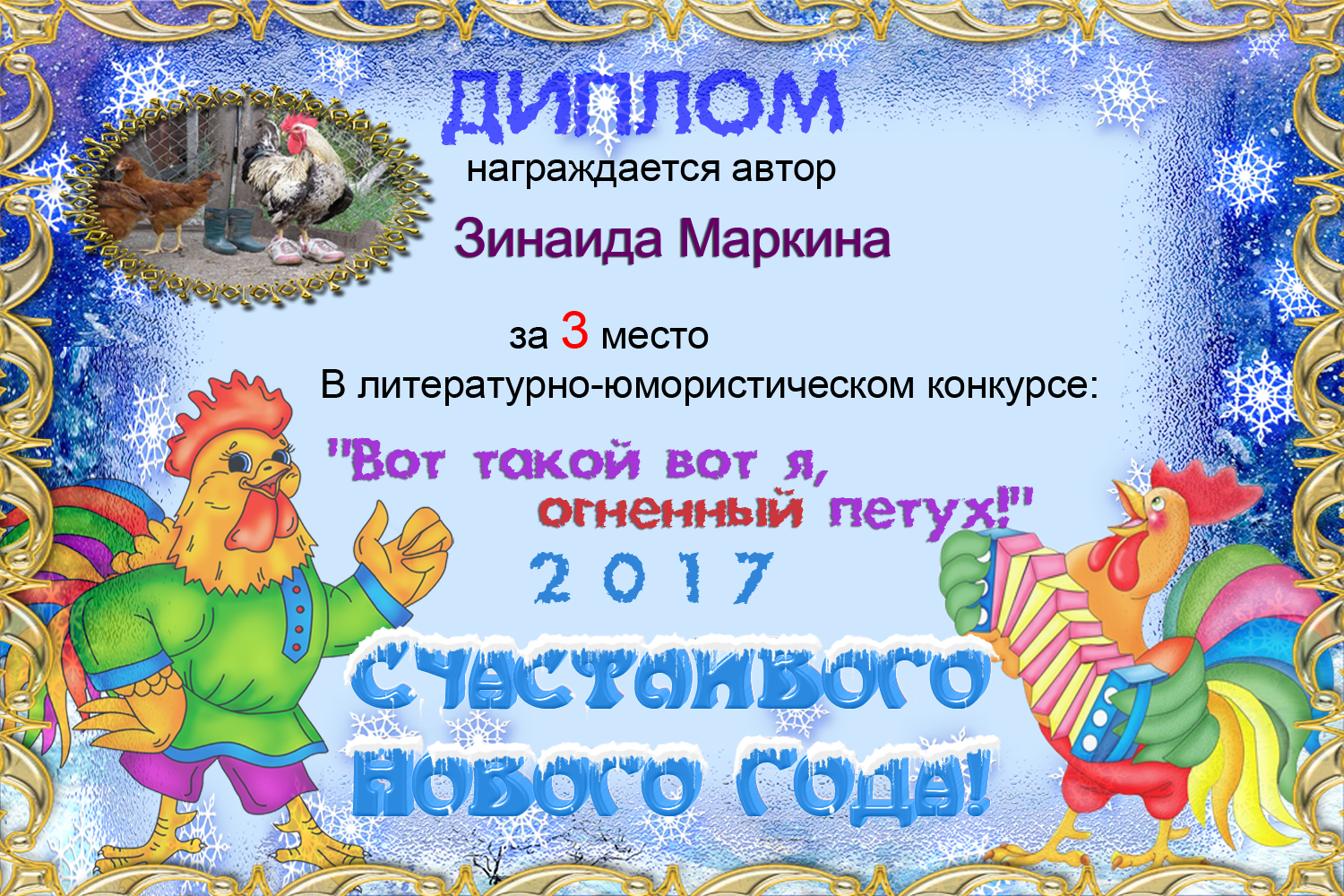 За победу в конкурсе на тему:"Вот такой вот я, огненный петух!"