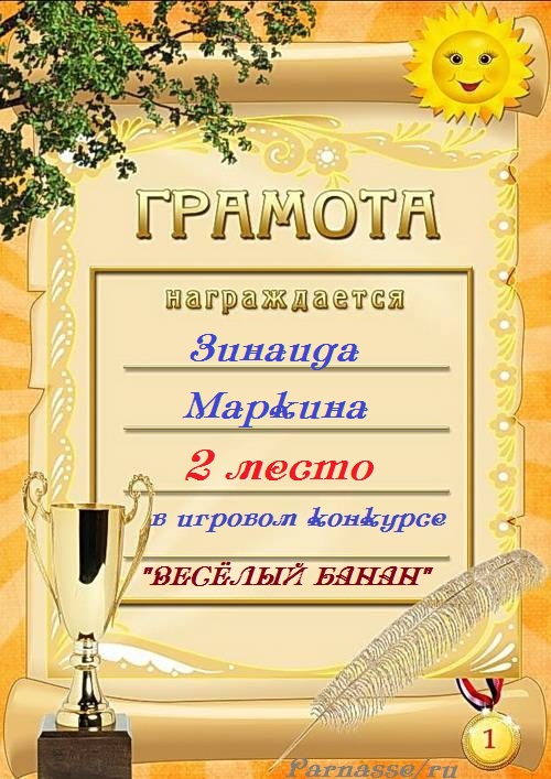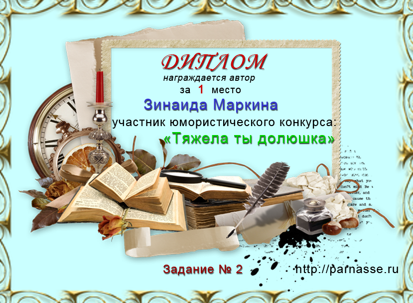 Диплом за 2 место в конкурсе " С юмором. о наболевшем"