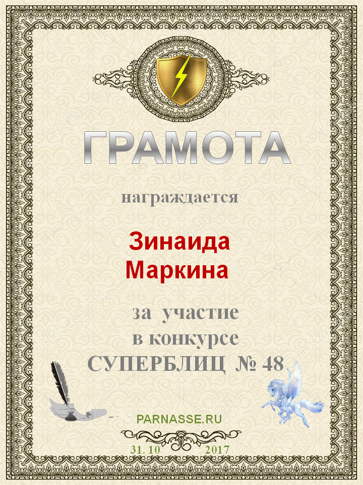 За участие в поэтическом конкурсе "СуперТёща-2017". Желаем вдохновения, счастья, семейного тепла и благополучия, любви близких людей.