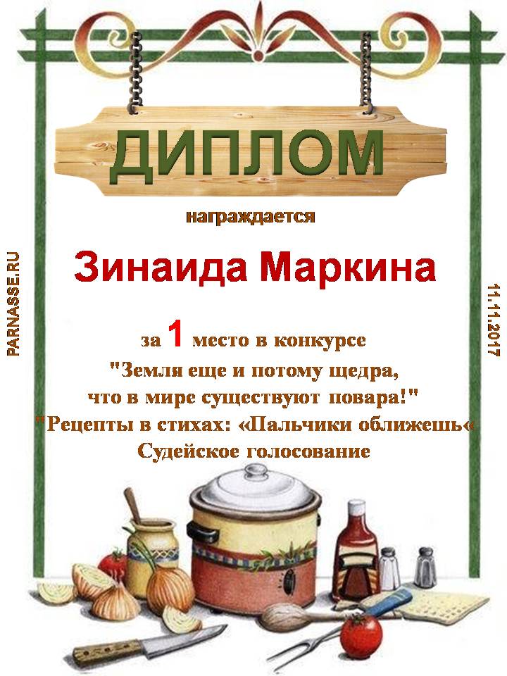 Поздравляем с 1 местом! Номинация: Рецепты в стихах:Пальчики оближешь! - судейское голосование.