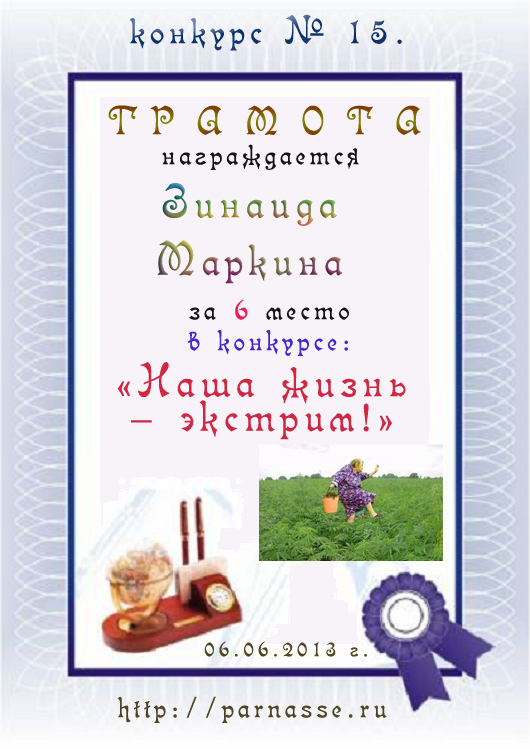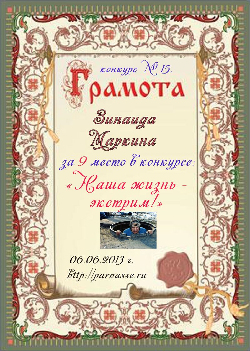 Грамота за 6 место в 15 конкурсе "Наша жизнь - экстрим"